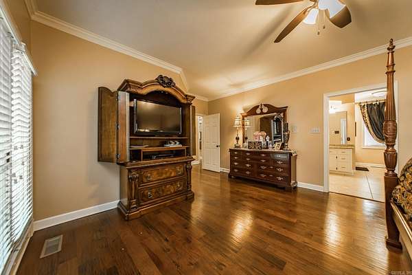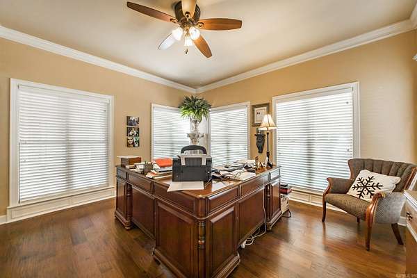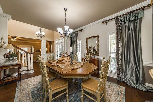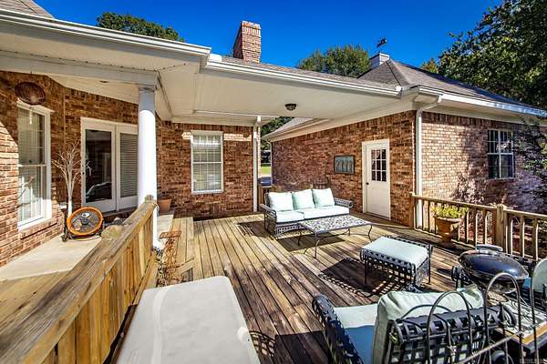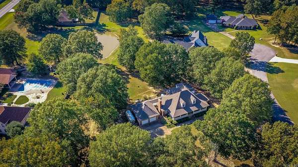 This beautiful 4-bedroom, 3.5-bath home sits on a 1.60 acre lot with a peaceful pond and mature trees. Inside, you'll find a formal living room and a large kitchen with a bar that opens to a cozy den featuring a fireplace. The primary suite offers a relaxing sitting area, his-and-hers vanities, and a walk-in closet. A large office with abundant natural light makes working from home a dream. Upstairs, one guest bedroom has a private bath while the other two share a convenient Jack-and-Jill layout. Enjoy outdoor living on the tiered deck overlooking the expansive yard. The oversized garage provides extra space for a workshop or storage. See Agent Remarks..