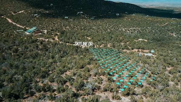 From NM 14 Turn west on La Madera Road. Continue straight until the pavement ends. Go straight about 1/4 mile to the gated entrance on the right. Once through the gate go straight, turn left on Skyline Pl the lot is at the end.