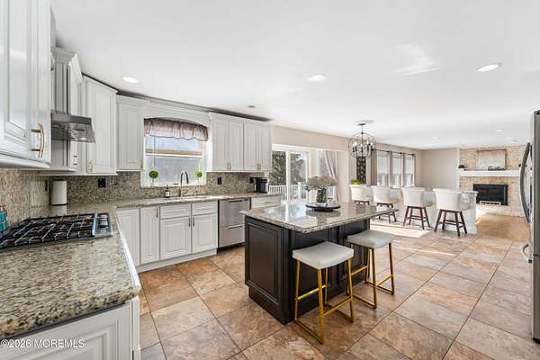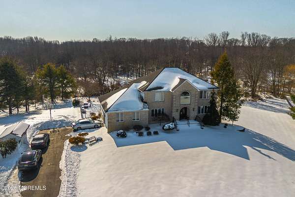 Welcome to this stunning brick-front Colonial, gracefully set on almost 2 acres of professionally landscaped property in one of the area's most desirable communities. Step into a grand two-story foyer featuring an elegant oak staircase. The formal living and dining rooms showcase custom molding, creating the perfect setting for entertaining and holiday gatherings. At the heart of the home is a gourmet center island kitchen boasting custom 42" cabinetry, granite countertops, designer backsplash, and state-of-the-art stainless steel appliances. The kitchen flows seamlessly into a step-down family room with hardwood flooring and a cozy wood-burning fireplace with brick surround. The first floor also offers a private office or potential 5th bedroom adjacent to a full bath, perfect for guests or multi-generational living. Upstairs, retreat to the luxurious primary suite featuring a coffered ceiling, oversized walk-in closet, and a spa-inspired bath with double-sink vanity, skylight, and frameless glass shower. All additional bedrooms are generously sized with hardwood flooring. The main bath also offers a double vanity and skylight for natural light. The finished walk-out basement includes a full bath and opens directly to your own backyard oasis a park-like setting with an in-ground concrete pool, Jerith fencing, expansive patio area, and a brand-new deck. This exceptional property offers privacy, elegance, and resort-style living all in a prime location.