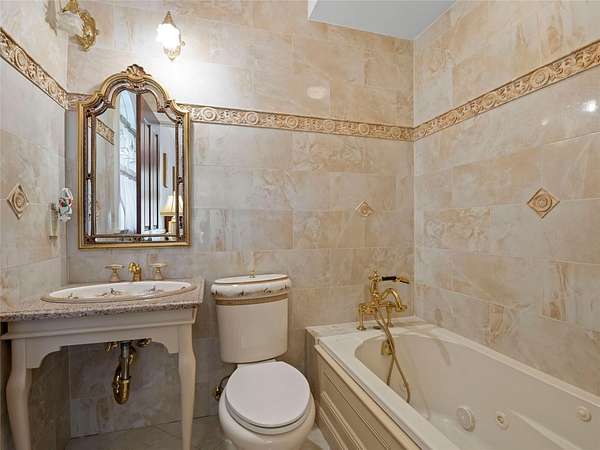 - Ceiling Fan(s), Chandelier, Chefs Kitchen, Crown Molding, Eat-In Kitchen, Entrance Foyer, First Floor Bedroom, First Floor Full Bath, Formal Dining, Granite Counters, High Ceilings, His and Hers Closets, Open Floorplan, Open Kitchen, Pantry, Primary Bathroom, Recessed Lighting, Soaking Tub, Sound System, Speakers, Walk Through Kitchen, Walk-In Closet(s), Washer/Dryer Hookup, Whole House Entertainment System, Wired For Sound