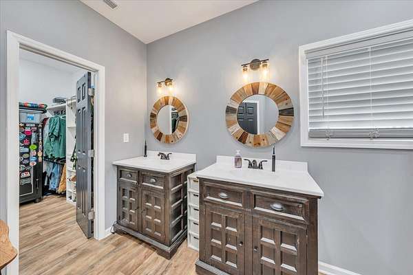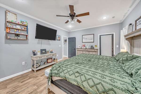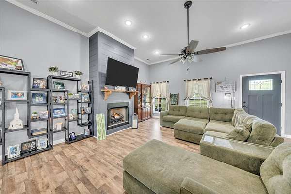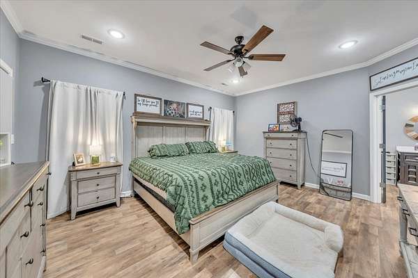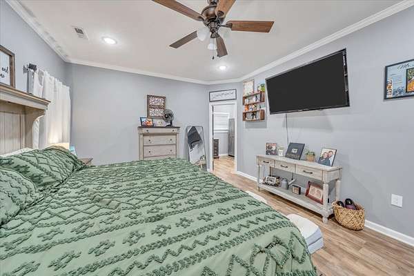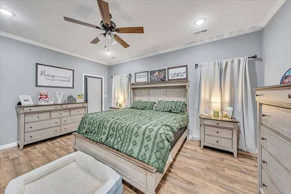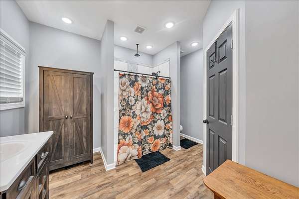 Inside, you’ll find a thoughtfully designed layout with an open living area, functional kitchen, and a large pantry providing plenty of storage. The home features a desirable split-bedroom floor plan and a spacious primary suite designed for comfort and privacy. The primary bedroom offers direct access to the back patio, creating the perfect spot to enjoy your morning coffee or unwind in the evenings. The en-suite bathroom includes a generous layout with a rainfall shower, adding a touch of luxury to your everyday routine.