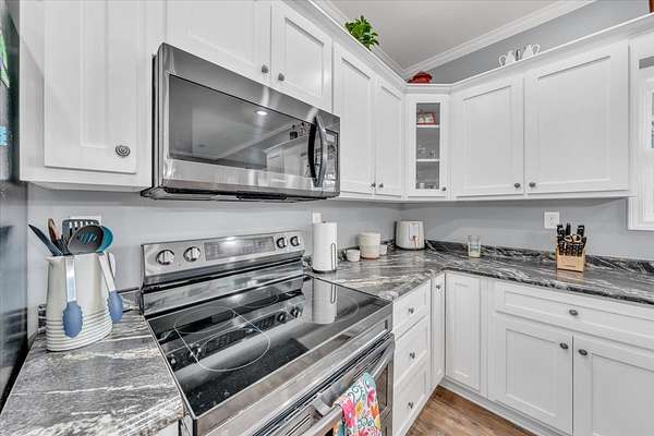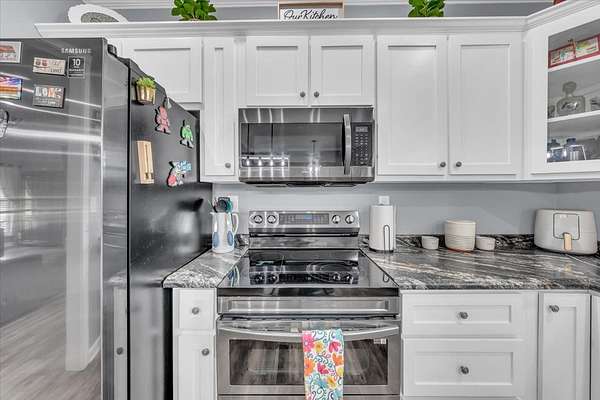 - Dishwasher, Double Oven, Microwave, Range, Refrigerator, Stainless Steel Appliance(s)