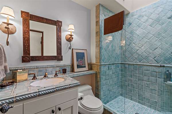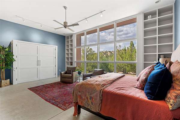 Welcome to a stunning Tesuque area compound in the prestigious gated Los Caminitos subdivision. On over 5 acres with a private well, fantastic Jemez and sunset views from main house built by Sharon Woods in 95'. The kitchen is stunning with doors to the portal with outdoor fireplace. Elegant living/dinning room surrounded on three sides by windows with upper end metal shades. Primary bedroom includes fireplace and access to rear patio. Two guest bedrooms have their own private deck with views of the Sangres. 3 car garage. Separate guest house with bath, as well as a large studio apartment and spacious studio with large north windows and new modern bathroom. Several owner upgrades including new entrance gate and septic field, new drip irrigation and pantry. Community pool and racquet courts. Lavender, roses, aspens, lilacs crab apple and peonies. 15 minutes from the plaza, adjacent to the Four Seasons resort, close to Tesuque Village Market and the world renowned Santa Fe Opera. If privacy, security and the New Mexico landscape is what you are looking for, come see.