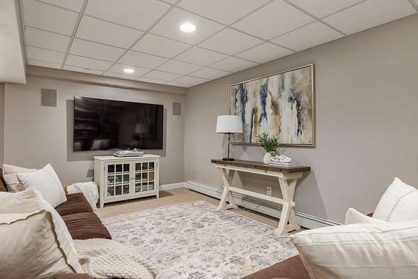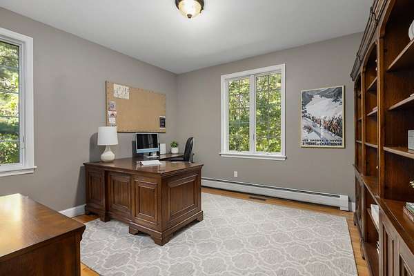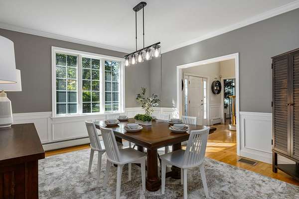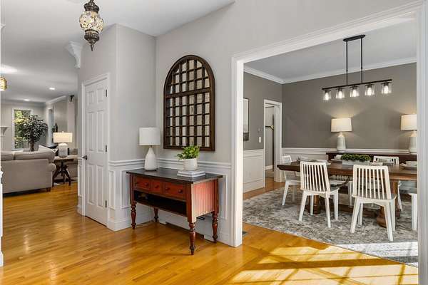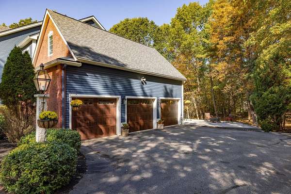 Home for the Holidays! This beautiful property is privately nestled in the desirable Winterberry neighborhood and was thoughtfully designed for entertaining and everyday living. Elegant and inviting, this home offers you three-levels of living space, custom finishes, high ceilings, two staircases, a 3-car garage and comfortable living space for all your needs! Taking center stage is the extraordinary showcase kitchen, featuring an expansive 10' center island, 6-burner gas range, endless counter and cabinet space, a Farmer's sink and work area. The chef's kitchen opens to the family room, with a cozy wood fireplace and large windows, creating the ideal space for spending time with family and friends while watching the big game! There is a beautiful dining room for hosting holiday dinner parties and a wonderful living room filled with natural sunlight and perfect for your piano! There's also a home office that could be used as a first-floor guest room! Upstairs, you'll discover four spacious bedrooms, including the Primary Suite oasis with a private sitting room, soaring ceilings, huge walk-in closet and luxurious bath. There is even a second-floor den (or playroom) plus room for future expansion and amazing storage in the walk-up attic! The finished walk-out lower level is a dream, with a large rec room, home gym and workshop! The outdoor space is just as impressive with a sprawling deck, big patio and oversized shed. Ideal location minutes to the beach and golf! Welcome Home!