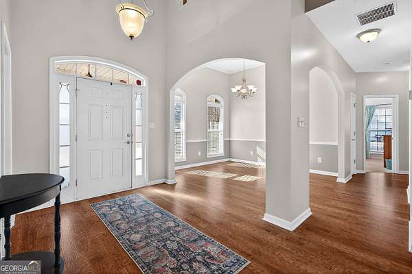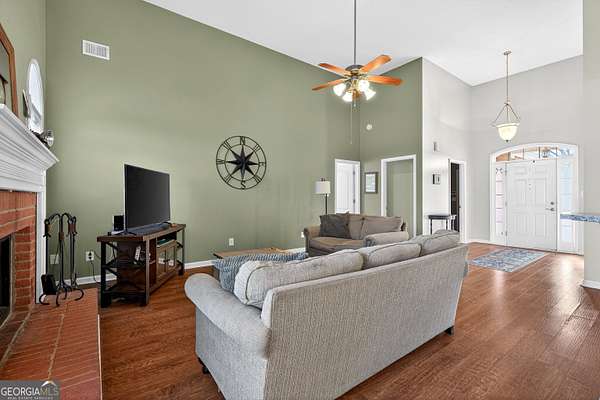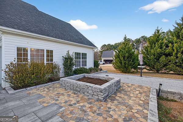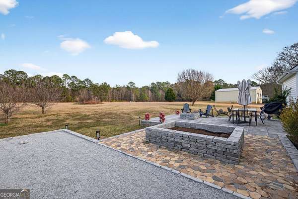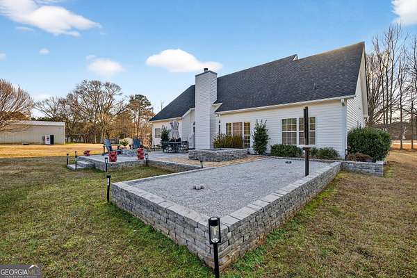 Welcome home to this beautifully appointed 4-bedroom, 3 full bathroom brick-front residence set on a level and expansive 2.7-acre lot, offering 2,174 square feet of thoughtfully designed living space and exceptional indoor-outdoor living. The home welcomes you with updated front columns (2026) and timeless curb appeal. Inside, enjoy soaring ceilings and a bright, open layout enhanced by freshly painted walls throughout the foyer, bedrooms, bathrooms, and office (2022). The kitchen is the heart of the home, featuring granite countertops, a new sink, and updated fixtures (2021), perfect for both everyday living and entertaining. Main-level bathrooms and the primary suite are upgraded with quartz countertops, new sinks, and fixtures (2021), adding a clean, modern feel. The primary suite is a true retreat, complete with a generous sitting area ideal for a home office or private lounge. Three additional bedrooms and full baths offer flexibility for guests, family, or work-from-home needs. Step outside to an incredible backyard oasis, completely transformed in 2023 with an expansive stone patio featuring a fire pit, raised garden bed, and a bocce ball court-perfect for entertaining or relaxing under the stars. The flat, usable acreage is enhanced by mature Leyland cypress, blueberry bushes, apple trees, and maple trees, creating beauty, privacy, and seasonal enjoyment. Major system updates provide peace of mind, including a roof (2021), two Trane AC units with new handlers and compressors (2020), and a water heater (2018). With thoughtful upgrades, exceptional outdoor spaces, and a rare 2.7-acre level lot, this home offers the perfect blend of comfort, quality, and lifestyle.