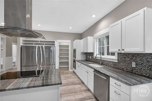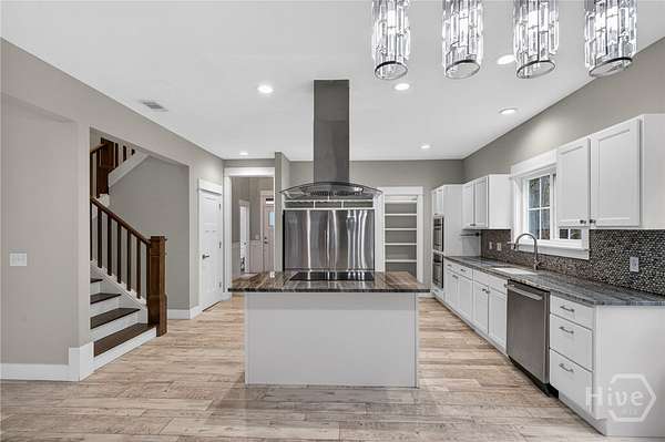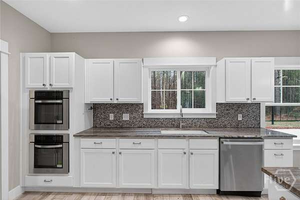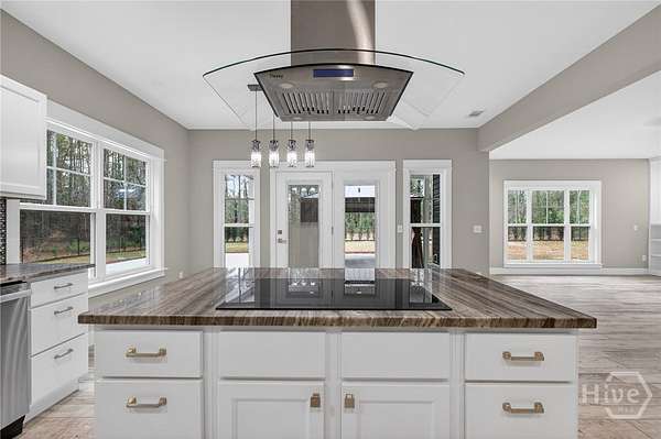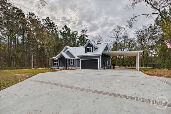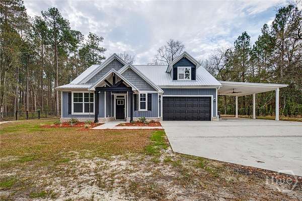 Modern Farmhouse Luxury on 1.9 Acres Experience the perfect blend of contemporary elegance and rural tranquility in this stunning 4-bedroom, 3-bathroom modern farmhouse. Situated on a sprawling 1.9-acre lot in Ludowici, GA, this 2,383 sqft (approx. 221.39 sqm) home is a masterclass in thoughtful design and high-end finishes. Interior Excellence The heart of the home is a bright, open-concept living area featuring light-toned flooring and sophisticated neutral tones. Chef's Kitchen: Anchored by a massive island with a built-in cooktop, this kitchen features double ovens, sleek white cabinetry, a striking pebble-stone backsplash, and a contemporary stainless steel vent hood. Great Room: Relax by the brick fireplace, flanked by expansive floor-to-ceiling built-in shelving. Versatile Layout: The home is designed for convenience with one bedroom and one bathroom located downstairs and three additional bedrooms upstairs. Designer Main Suite: Retreat to a spa-like main bath featuring a freestanding soaking tub, dual vanities with vessel sinks, and a massive walk-in shower with floor-to-ceiling wood-look tile and a rainfall showerhead. Exceptional Storage: The main walk-in closet is a dream, complete with a dedicated lighted makeup vanity/dressing table. Functional Mudroom & Laundry: A dedicated mudroom with built-in cubbies and a laundry room equipped with a utility sink and folding counter make daily organization effortless. Outdoor & Workshop Amenities The exterior of this house is just as impressive as the interior, offering unmatched utility. The Shop: A massive 20 x 40 insulated blue steel shop with electricity provides the ultimate space for hobbies or extensive storage. Abundant Parking: Includes a 2-car garage plus a large attached 2-car carport with a ceiling fan for a comfortable outdoor workspace. Outdoor Living: Enjoy the massive backyard from your covered back porch or the large concrete patio, which features a permanent gazebo structure