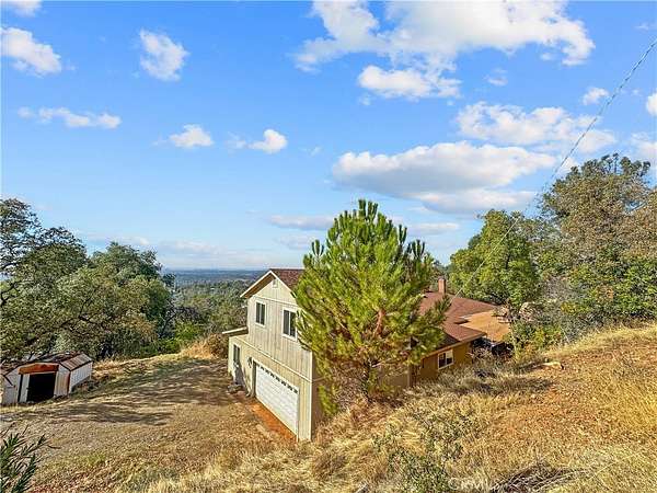 Enjoy Panoramic Views and Endless Potential! Soak in the breathtaking views from this private 1.5 acre property located at the end of a paved road! This spacious home features 3 bedrooms, 2 bathrooms, and 1,879 sq. ft. of living space, plus an additional 1,078 sq. ft. garage/shop with an upstairs bonus room. Inside, the master bedroom offers a private bath, while the living room, kitchen, and dining area capture stunning views of the valley. The family room opens to a covered deck through a sliding door, perfect for relaxing or entertaining while taking in the sunsets. The garage/shop addition includes an upstairs bonus room with valley views, drywall, and tons of electrical outlets. Outdoors, you'll find orchard space, pasture area, raised garden beds, and three metal storage sheds. The property line borders the South Feather Water canal, adding a peaceful touch to the setting. This property combines privacy, views, and potential.