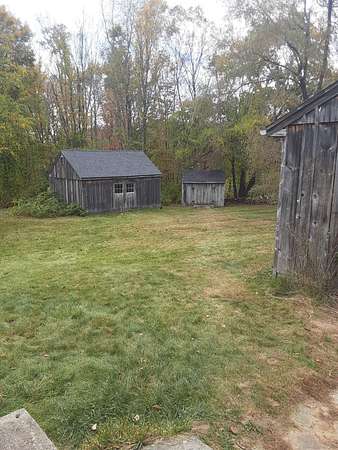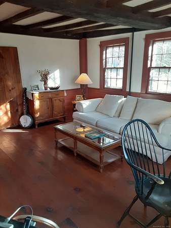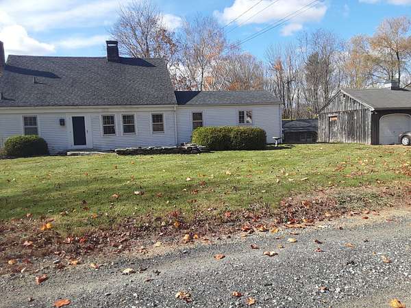 Enjoy the splendor of exceptional tranquility on your own 12 acre mini estate; circa 1760 pre-American Revolutionary War cape has 2 bedrooms 1.5 baths, wide board floors throughout, original exposed chestnut beams, 3 fireplaces that all work, kitchen granite counters, glass/screen sunporch, 20' x 30' garage that includes a heated/air-conditioned home office, an oak post & beam carriage shed out back, a small stream, ideal for a mini farm, hunting, etc. 462' of road frontage means potentially subdividable for another house lot w/in-law apartment as the zoning allows. The 1,250-gallon septic tank is code for a 4-bedroom house. While the driveway is 50' from paved Leonard Rd, if you have a few horses or like to walk your dogs, this home is one of only 4 houses on 4,000' long Blodgett Rd which is a designated scenic town-maintained gravel road, meaning paving would require a vote of over half the property owners.