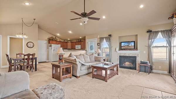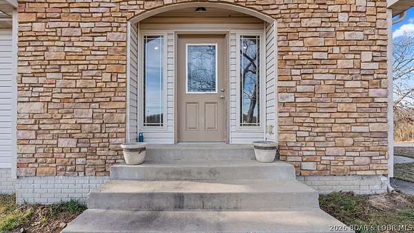 Elegant single level retreat just minutes from Osage Beach. Set on 3.7 serene acres, this beautifully laid-out 3-bedroom, 2-bath residence offers refined one-level living with a thoughtful, flowing floor plan. Enjoy generous bedroom sizes, peaceful surroundings, and the rare blend of privacy with easy access to shopping, dining, and lake life. With a touch of TLC, this property presents an exceptional opportunity to create a custom, luxury retreat in a quiet, sought-after setting.