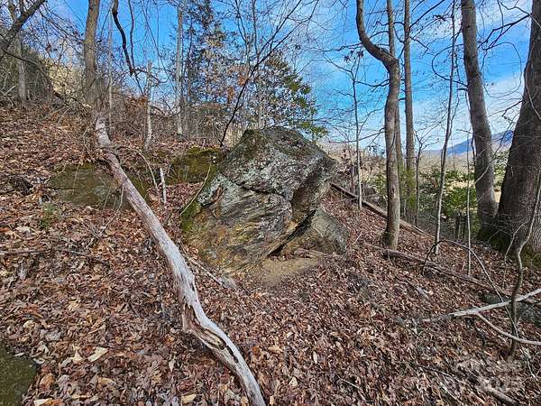 A beautiful piece of mountain land with numerous outcroppings of natural stone and long range mountain views. A concrete roadway provides community access to a gently sloped soil roadbed leading to a level building site. No restrictions allow for many possibilities of use for site built home, as well as modular or mobile homes. Acreage may be subdivided, with several potential homesites. Long range winter views can be made to year round views with tree clearing. Property is less than 10 minutes to downtown Sylva. Land is heavily wooded with a year round stream. Much privacy and quietness is found at this parcel.