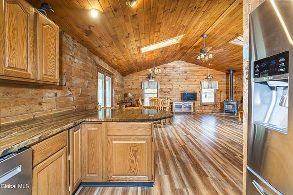 Est $3,295/moTranquility and privacy at its best. Excellent opportunity to own acreage and be close to numerous community amenities. Lovely log cabin style home situated on close to 15 very private acres. This home features a large open floor floor plan with updated kitchen (granite and newer ss appliances). First floor primary bedroom ensuite and mostly finished heated basement. Home office perfect for the remote employee. Newer metal roof. Large 18x36 heated pool with new liner in 2024.