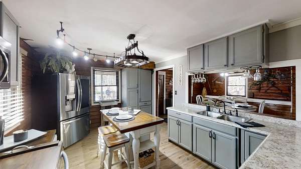 This peaceful property is a 2BR, 1BA, 2730 sq. ft. home sitting on 1.62 +/- acres sitting on one of the highest points overlooking Frie Lake. This peaceful property has an open floor plan allowing for a smooth transition from the kitchen area to the dining room and living areas. The back deck has a relaxing ambiance as you sit and watch the wildlife in the surrounding woods and overlooking the lake. The upstairs level offers new Anderson'' windows throughout. The downstairs is a full walkout basement offering an amazing large room for entertaining. A beautiful live edge wood bar area and extra living space. The property has a 30x46 shop with 12 ft. ceilings and is heated/cooled with a bonus Atlas'' 9,000 lb lift and an air compressor that is plumbed with air drops throughout. There is also a small Storage Shed with an awning for extra storage space.