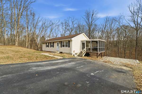 Welcome to 80 Hanover Road, a peaceful country retreat set on nearly 2 acres in Canterbury. This 3-bedroom ranch offers privacy, simplicity, and outdoor living-ideal for first-time buyers, downsizers, or those seeking a quiet country escape. The home features 1,008 square feet of single-level living with a comfortable living space, and three well-proportioned bedrooms offering flexibility for guests or a home office. A screened porch provides a relaxing place to enjoy the surroundings, while the spacious deck is perfect for entertaining or unwinding outdoors. The full walkout basement offers excellent storage and utility space and includes laundry, with opportunity for future finishing. Heating is oil hot-water baseboard, supplemented by a wood stove/wood furnace for added efficiency. Additional features include a paved driveway, carport/garage, and large storage shed. The open yard and wooded setting provide room to garden, play, or expand, all while remaining conveniently located near surrounding towns and amenities. Move-in ready with room to make it your own. Please ask for your copy of the Property Packet