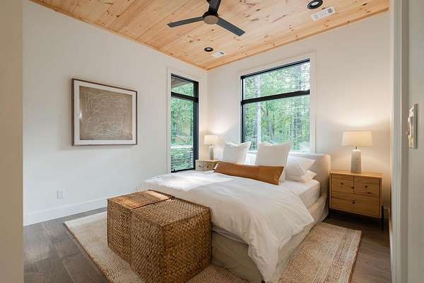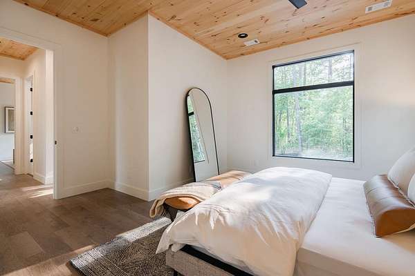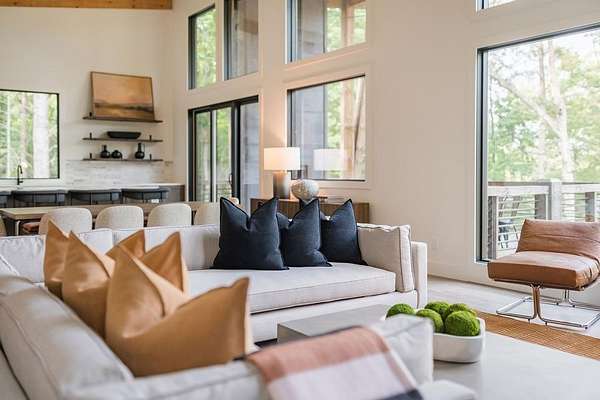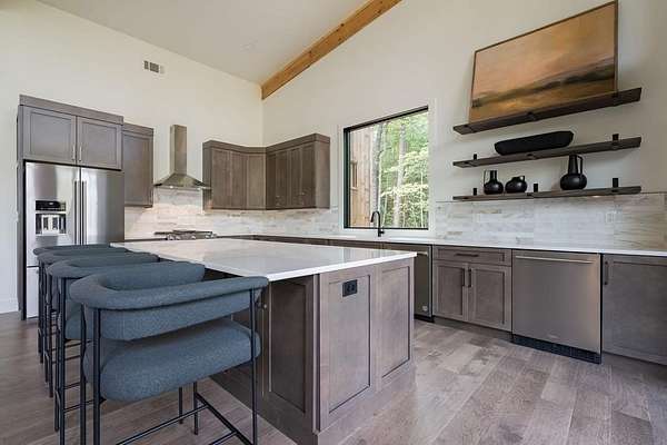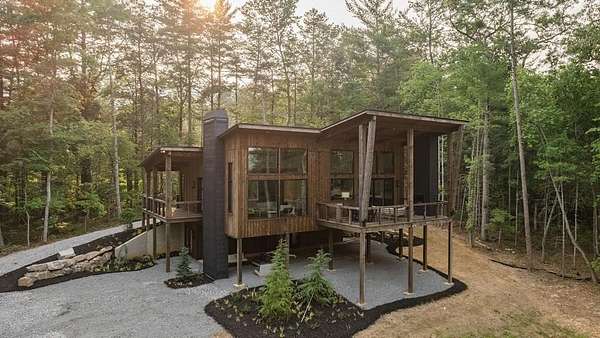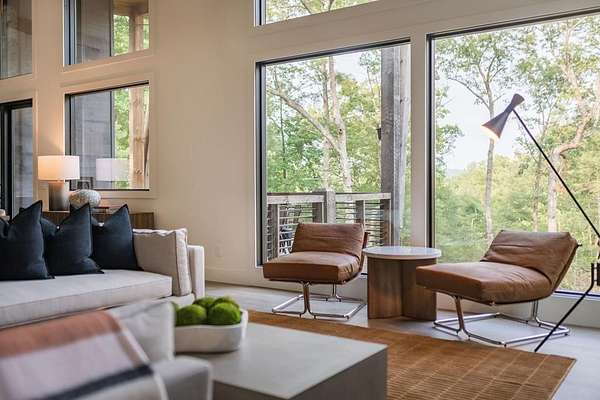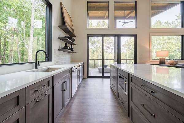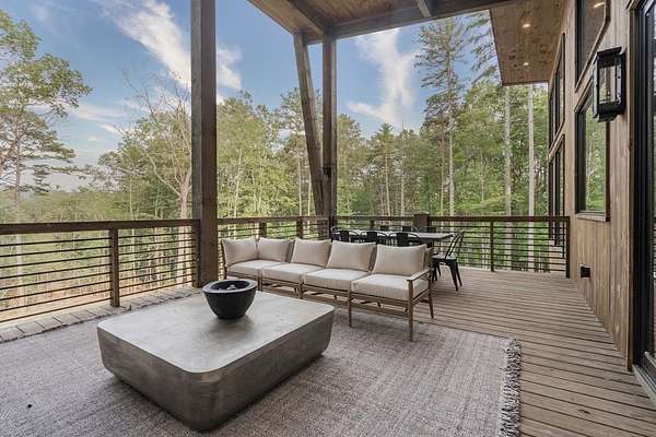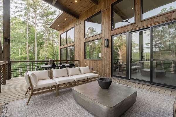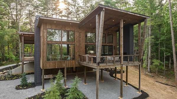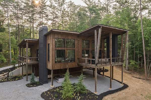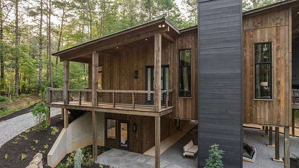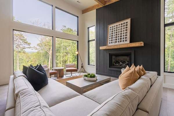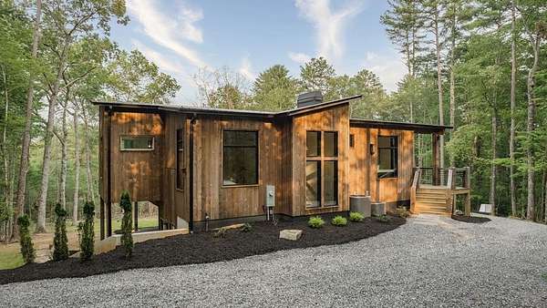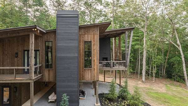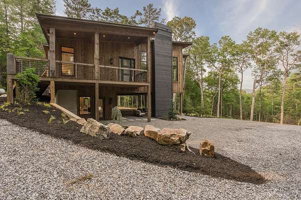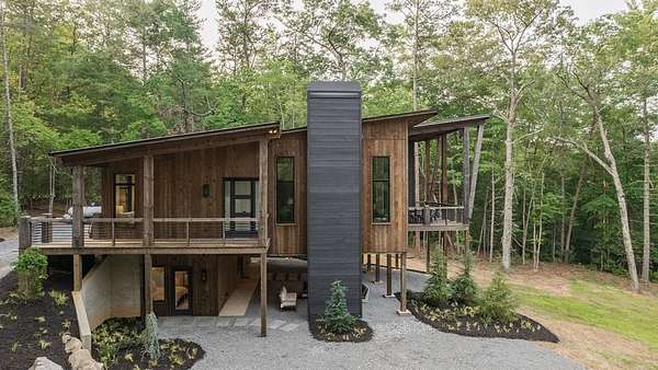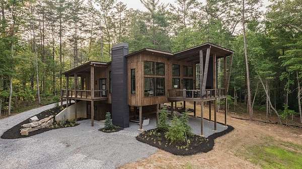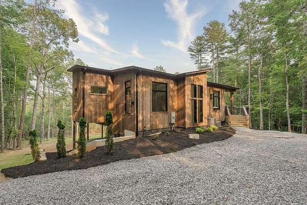 Experience refined mountain living in this newly constructed contemporary chalet, privately nestled on a completely secluded mountain lot in the sought-after Aska Adventure Area. Thoughtfully designed to embrace its surroundings, this striking home features an open-concept layout with soaring ceilings, walls of glass, and expansive sliding doors that seamlessly connect to an oversized outdoor deck with a fireplace -- all capturing year-round lush canopy views. Enjoy complete privacy with ample space to add a guest house, detached garage, or pool + poolhouse! Just minutes from Downtown Blue Ridge and steps from premier hiking, biking, and the Toccoa River, this rare offering combines luxury and location. The exterior is equally captivating, with professionally designed landscaping, boulder features, and curated greenery enhancing the home's natural elegance. Authentic gas lanterns encircle the home's perimeter, casting a warm, timeless glow in this Appalachian sanctuary. Inside, discover three well-appointed en-suites plus a versatile bunk room/office/flex space. A gourmet kitchen with quartz countertops, an oversized eat-in island, and high-end appliances creates an ideal setting for entertaining. The residence comes fully furnished with designer-selected pieces and dcor, including a hot tub for ultimate relaxation. The spa-inspired primary suite offers a peaceful retreat with a soaking vessel tub -- the epitome of laid-back luxury. Whether as a full-time residence, weekend getaway, or high-performing short-term rental, this is truly a legacy property. Call today -- this one-of-a-kind mountain escape will not last!