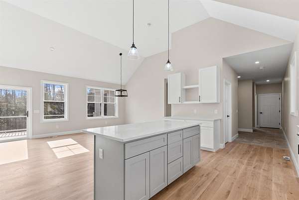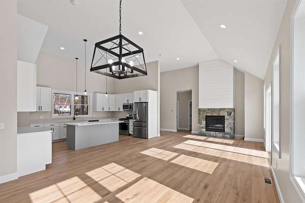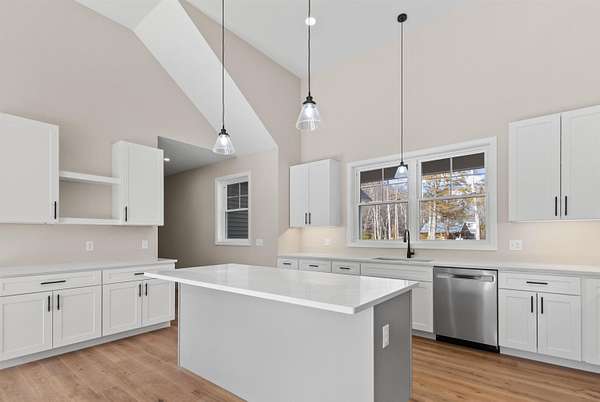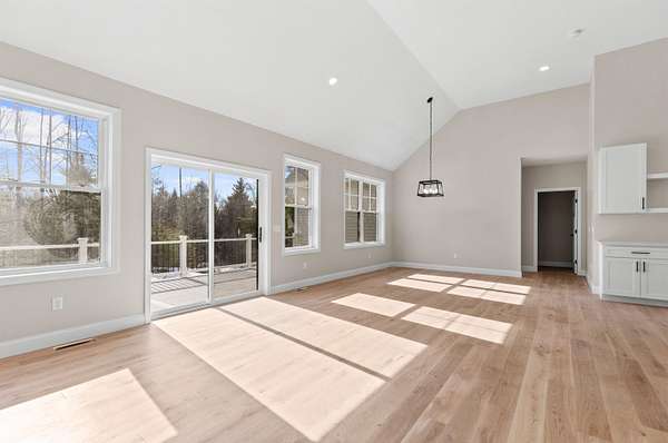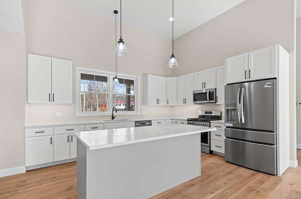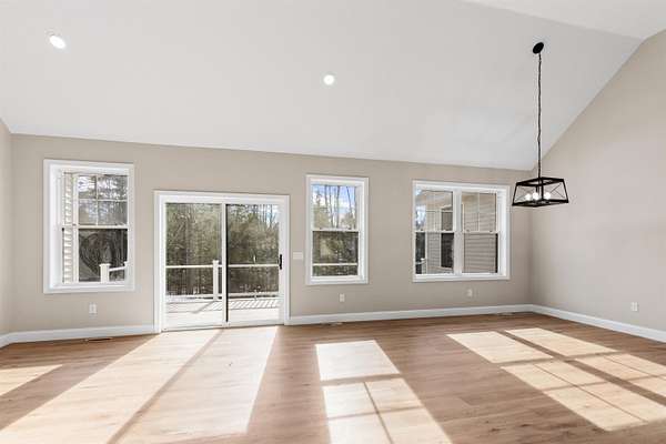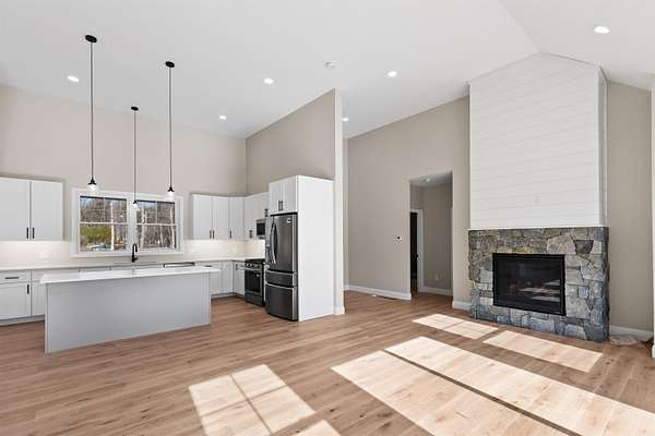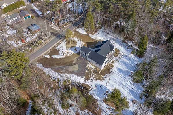 Welcome to this stunning, brand new construction home set on 4.15 acres in one of Meredith’s most desirable neighborhoods. Thoughtfully designed and completely move in ready, this property offers the perfect blend of modern finishes, comfort, and timeless style. Step inside to a bright and inviting open concept layout filled with natural light. A charming front porch welcomes you in. Beautiful oak wood floors, quartz countertops, and custom details throughout create a warm yet refined feel. The spacious kitchen features a pantry and flows seamlessly into the living and dining areas with soaring ceilings. A cozy gas fireplace with a beautiful stone surround anchors the living space. A well designed mudroom with built in bench and cubbies adds both function and charm. The primary suite is a true retreat, complete with a spa like bathroom featuring a soaking tub, tiled shower, and an oversized walk in closet. Two additional bedrooms, three bathrooms in total, and a dedicated laundry room offer plenty of space and convenience. An unfinished bonus area above the attached two car garage provides excellent potential for future expansion, while the walkout basement offers even more room for storage or additional living space. Step out through a sliding door to a generous back deck overlooking a serene, wooded backyard with incredible privacy. Located in the Inter Lakes School District and just under 10 minutes to Lake Winnipesaukee, Meredith Town Docks, shops, and restaurants, this home delivers both privacy and accessibility. A rare opportunity to own a turnkey home in the heart of the Lakes Region. The home will feature a paved driveway, and the yard will be professionally graded and hydroseeded.