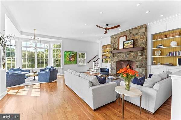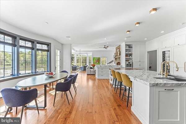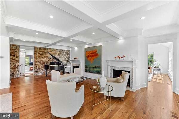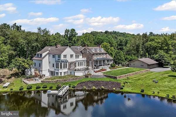 In the heart of historic Chadds Ford, a Pennsylvania stone masterpiece by Dewson Construction stands gracefully on the banks of Karver Lake. Marrying timeless craftsmanship with modern livability, the newly renovated home celebrates its 7-acre waterfront setting with architecture designed by Archer & Buchanan'honoring Georgian traditions while embracing light, scale, and sweeping views of the lake.The stonework of the original residence was carefully matched and carried into the home's facades and garden walls, grounding the estate in its historic heritage. Inside, natural light floods the soaring foyer and grand staircase. Reclaimed white oak floors, richly stained, stretch across the main and upper levels, their warm tones providing classic contrast to the soft, neutral palette. Ten-foot ceilings, paneled doors, and historically reproduced hardware elevate every room with a sense of substance and authenticity. Just beyond the entrance, an elegant office makes working from home effortless, while a pair of original fireplaces anchors the gathering room, enhanced by coffered ceilings and dining space suited for both casual evenings and elegant entertaining. A sun-filled retreat framed by an original stone wall and expansive windows provides a comfortable space for relaxation, study, or play.At the heart of the home, the newly renovated kitchen is a study in understated luxury'rich custom cabinetry, finely integrated appliances, and a blend of stone and wood counters come together in perfect harmony. Meals are served at the bay-window table or grand marble counter, all open to the adjoining family space with cozy seating groups by the stone fireplace, or the stunning lake view. French doors open to sweeping lawns and water views, inviting seamless indoor-outdoor living.A mudroom with custom cubbies, family and formal powder rooms, walk-in pantry, scullery, and abundant storage offer practical elegance. Upstairs, the primary suite evokes the calm of a luxury hotel with spacious walk-in closets and a spa-inspired bath. Three additional en suite bedrooms, an au pair suite with private sitting room, and a second-floor laundry serve family and guests with ease. The third floor extends the home's versatility with two bedrooms, a full bath, and flexible bonus space.The daylight lower level is dedicated to wellness and recreation, featuring a fully appointed fitness suite with steam shower and sauna, full bar, lounge, and theatre. Outside, an accessory three-bay carriage house complements the attached two-car garage, offering ample space for vehicles, hobbies, and garden equipment.Every detail of this lakefront home reflects the artistry of its craftsmen, blending old-world character with state-of-the-art systems for comfort and efficiency. The result is a one-of-a-kind residence that is as elegant as it is livable, as timeless as it is current.