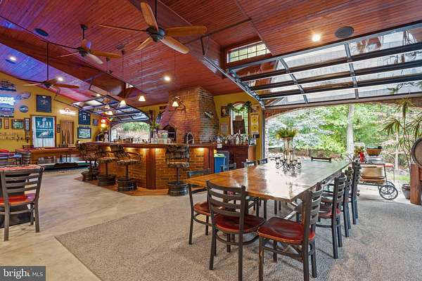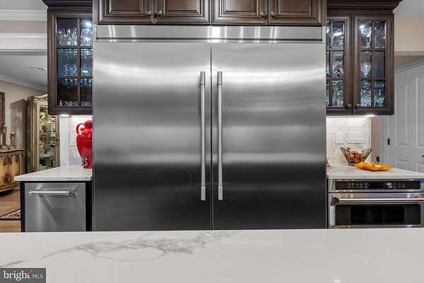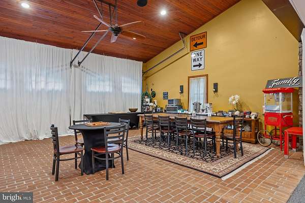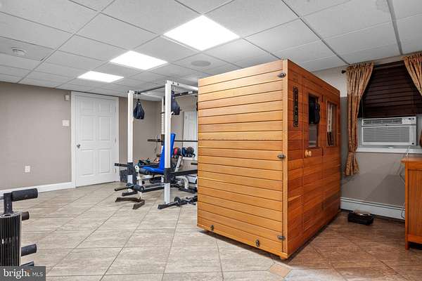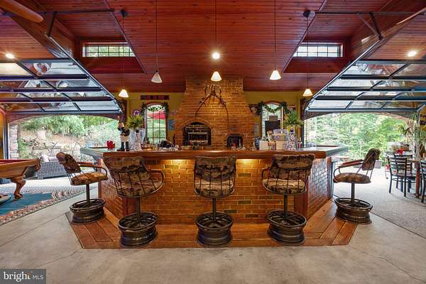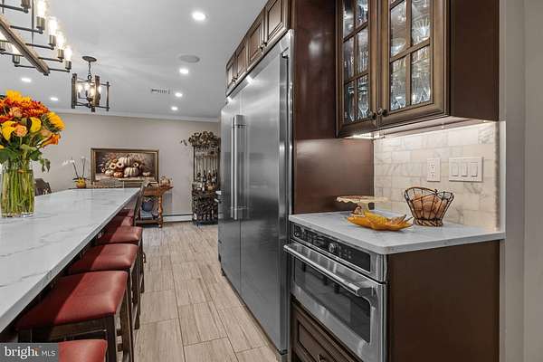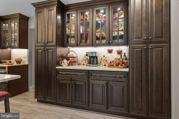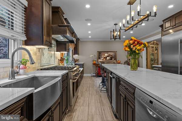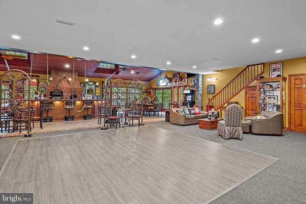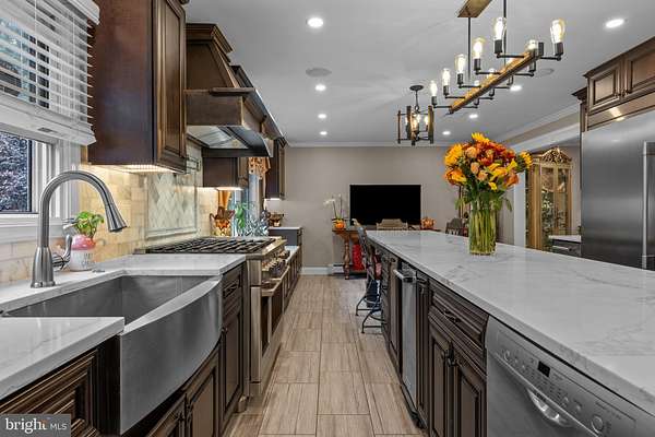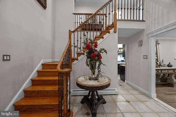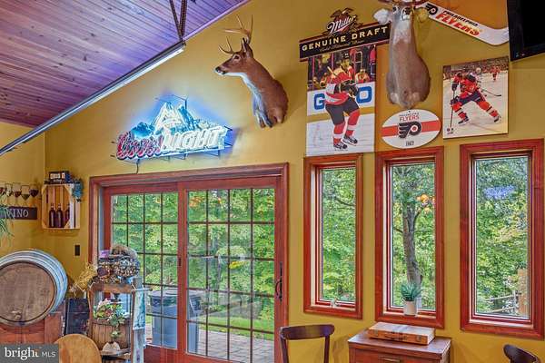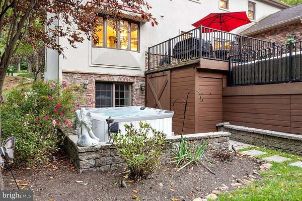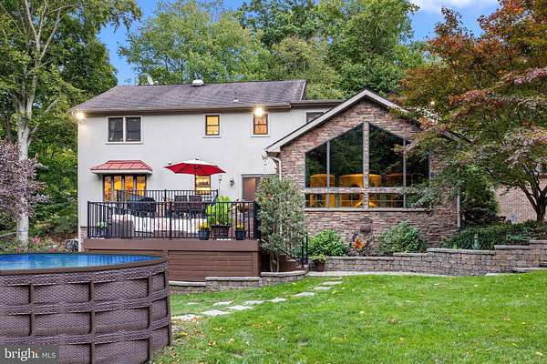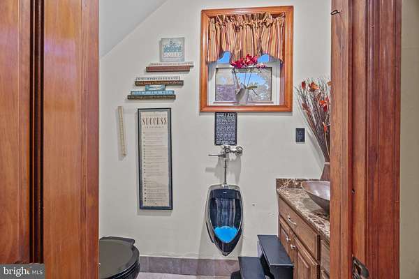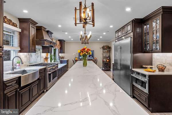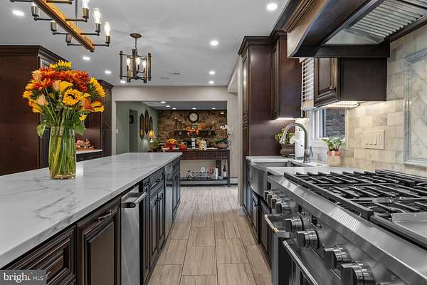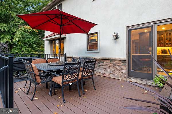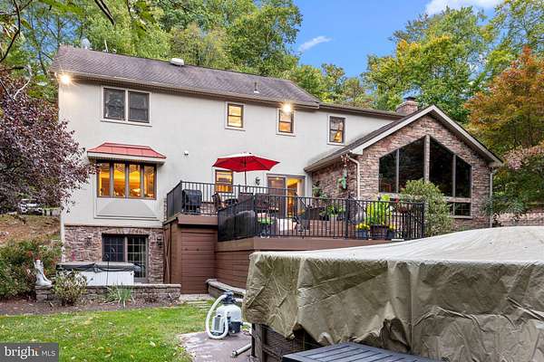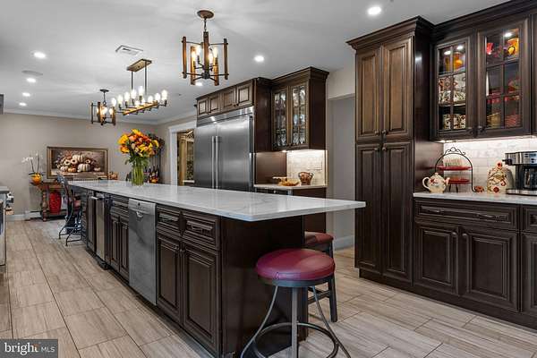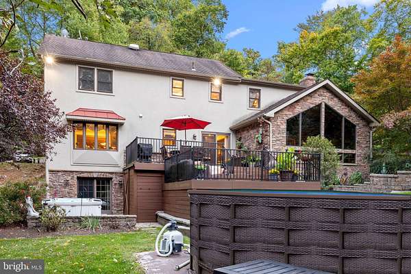 Tucked away on a private dead-end street in the highly sought-after Upper Moreland Township, this exceptional 5-bedroom, 4.5-bathroom home sits on a sprawling 1.55-acre lot, offering the ultimate in privacy and luxury. As you approach the home, the grand double-door entry opens to a dramatic 2-story foyer, featuring elegant ceramic tile flooring and an oak staircase with wrought iron railing. The formal living room is a beautiful space with hardwood floors, a stunning stone wall with a wood-burning fireplace, and a mantle that adds a warm, inviting touch. Adjacent to the living room, the sunken family room features soaring vaulted ceilings and floor-to-ceiling windows that fill the space with natural light, creating a seamless connection to the outdoors. The heart of the home is its recently remodeled (2023) gourmet kitchen, a true chef's dream. The expansive 20-foot center island, with seating for up to 15 people, anchors the space and is complemented by top-of-the-line GE Cafe appliances, including a 48" commercial-grade range, custom chimney hood, side-by-side 60" refrigerator/freezer, and a full ice maker. The kitchen also boasts a farmhouse-style sink, two coffee bars, a trash compactor, and custom mocha cabinetry that reaches from floor to ceiling, all accented by crown molding. Imported quartz slab countertops and a honed Carrara marble backsplash add an extra layer of sophistication. A sliding glass door leads from the kitchen to a two-tiered custom TREX deck, perfect for outdoor entertaining, with aluminum black railings, stack stone walls, and Dryvit stucco accents. Below the deck, there's additional storage space for convenience. The main floor is further enhanced by a spacious bedroom with an en-suite full bath, ideal for guests or multi-generational living, and a well-appointed laundry/mudroom with direct access to the garages. The second floor is home to the luxurious primary suite, complete with hardwood flooring, a private sitting room, a large walk-in closet, and an en-suite bath featuring tumble marble tile, a frameless glass shower, and marble flooring. Two additional generous-sized bedrooms share a full bathroom with dual vanities and a tub/shower combo, offering comfort and privacy. The fully finished basement extends the home's living space and is perfect for both relaxation and entertaining. It features an additional bedroom, full bathroom, game room, two office areas, and a cedar closet, all with recessed lighting and ceramic tile flooring throughout. The basement also offers ample storage, including under-stair storage, and includes surround sound wiring. Sliding glass doors lead directly to the backyard, where you'll find a private patio and a Jacuzzi, perfect for unwinding. This property also includes a truly unique and impressive 3300 sq. ft. garage/Party Hall, which was originally designed for custom car storage but has since been transformed into an entertainer's paradise. This expansive space includes a dance floor, a game area, a living/dining space, and a built-in wet bar with a pizza oven and fireplace, ideal for hosting large gatherings. The barn is equipped with recessed lighting, surround sound, brick paver and concrete flooring, and two rear garage doors that open to the backyard. Additional features include a half-bath with a toilet and urinal, a walk-up attic for extra storage, and a 1-car attached garage. The backyard is equally impressive, featuring a charming two-story "princess house" is perfect for children or as a whimsical retreat. The entire property is surrounded by lush landscaping, ensuring ultimate privacy and serenity, while the expansive outdoor spaces, including the custom deck, patio, and Jacuzzi, provide plenty of room for entertaining or simply enjoying the tranquil surroundings. This remarkable home is a rare find, offering unparalleled luxury, craftsmanship, and space in one of Upper Moreland Township's most private and prestige locations.