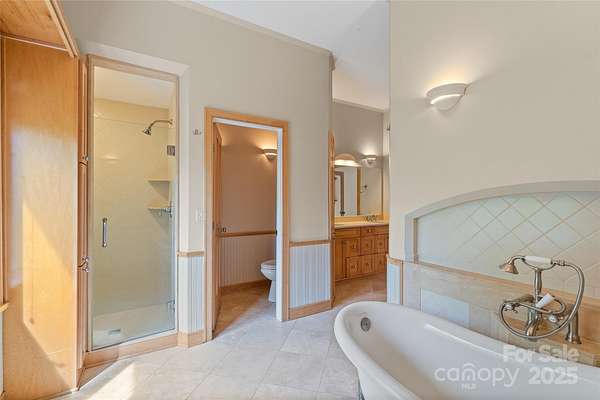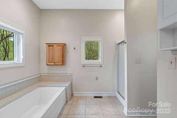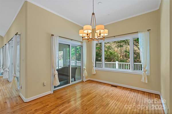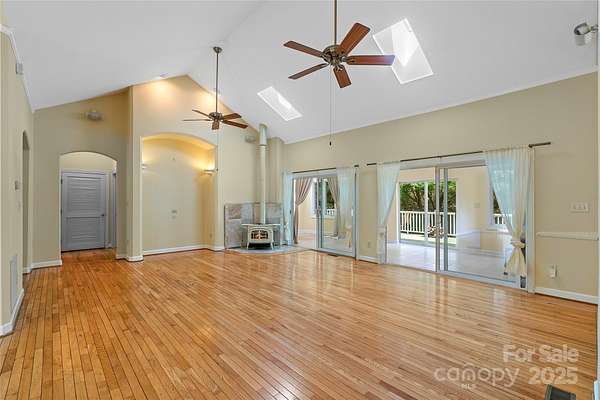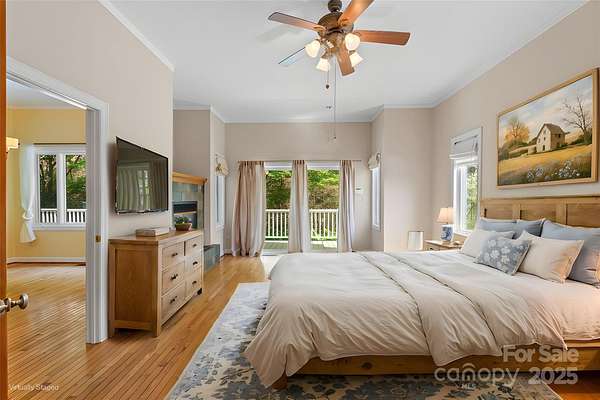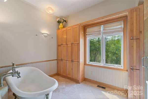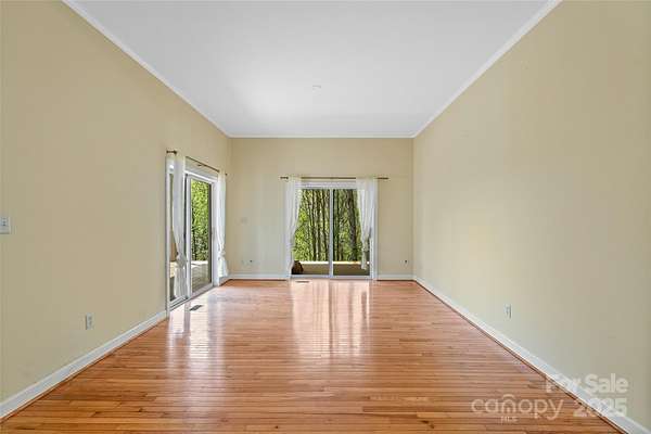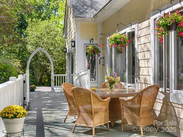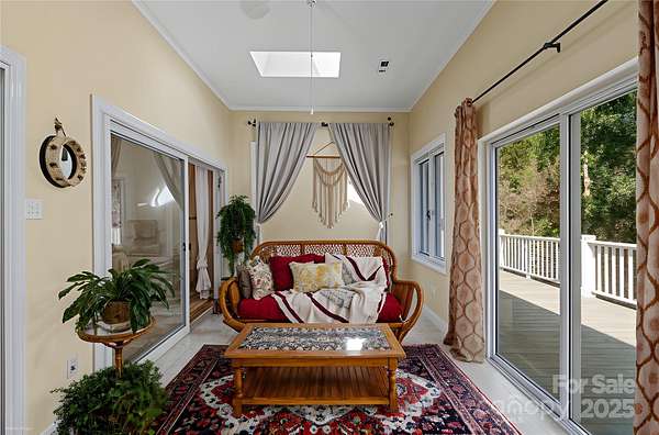 Elegant single-story 3BR home on over 9 acres in Fairview, just 15 minutes from Asheville! This rare mountain retreat offers privacy and versatility, with 3 separate lots providing peace of mind and potential building sites or multi-generational living options-all nestled in the beauty of WNC's temperate rainforests. The open, split floor plan is flooded with natural light from vaulted ceilings and skylights, featuring refinished hardwood floors, crown molding, and a spacious sunroom with exercise area. Cozy up with a wood stove or gas log fireplace in the primary suite. Thoughtful upgrades include cedar-lined walk-in closets, a volcanic stone claw soaking tub, alarm system, whole-house generator, mounted EV charger, safe in closet, and paved driveway. Enjoy the outdoors with professionally designed landscaping, stacked flagstone beds, stone water fountain, covered front porch with vaulted ceiling, and a generous back deck. Mountain views can be opened up by removing only a few trees.