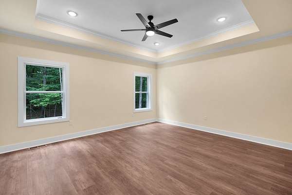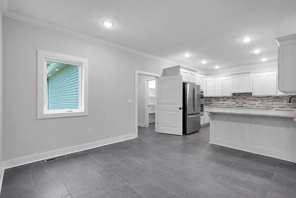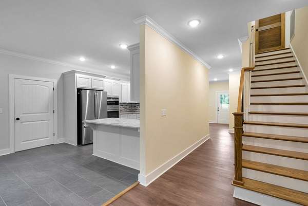 Inside, the main-level master suite provides a private retreat, while the sunroom floods the home with natural light. The kitchen boasts stainless steel appliances, a large pantry, seamlessly connecting to the mudroom just off the garage for added convenience.