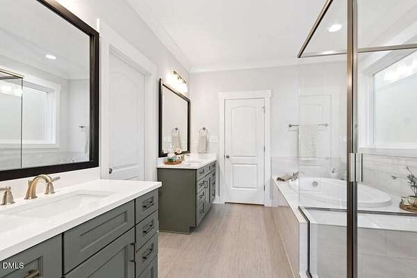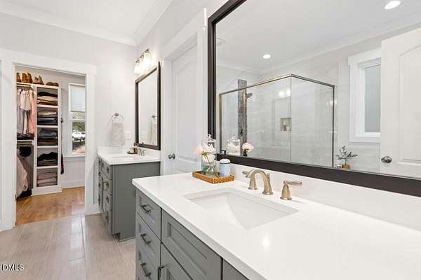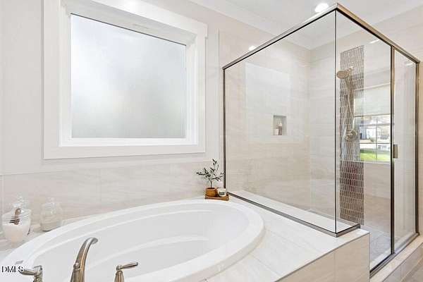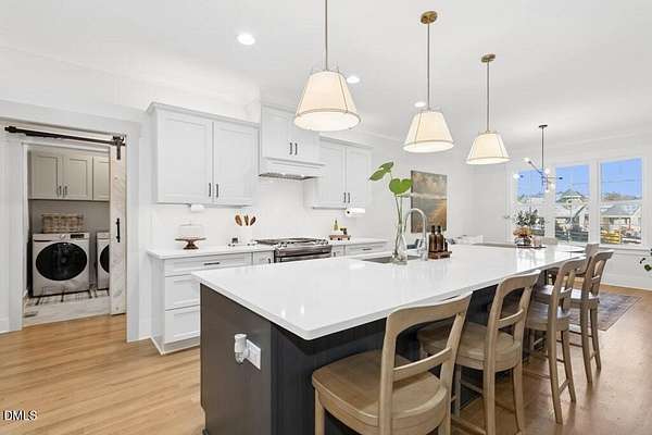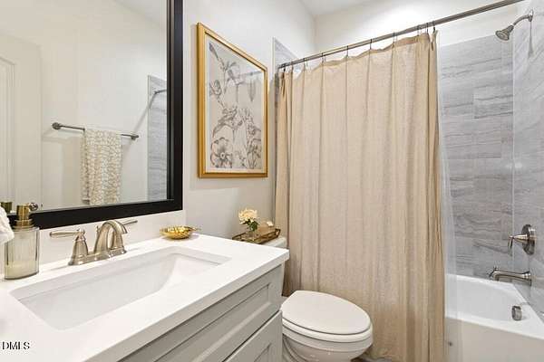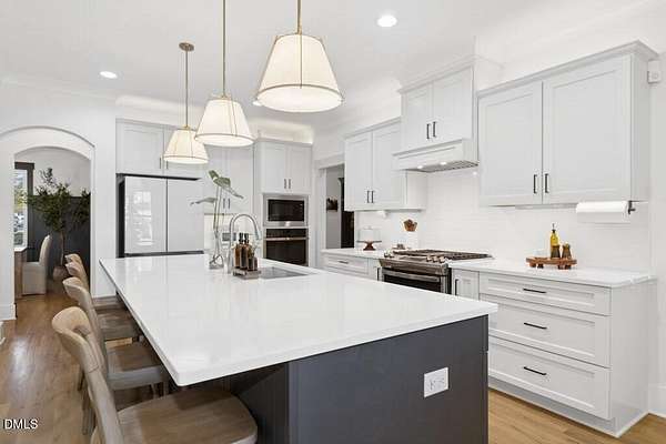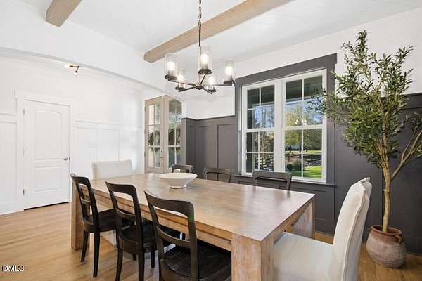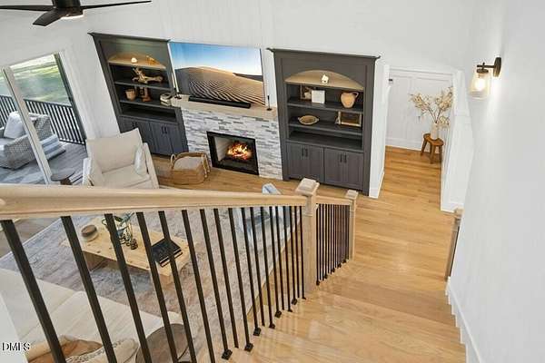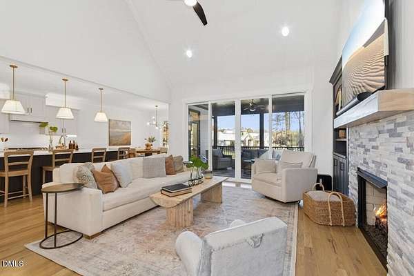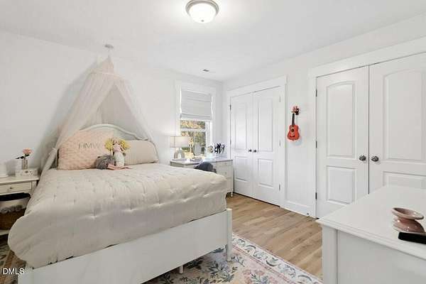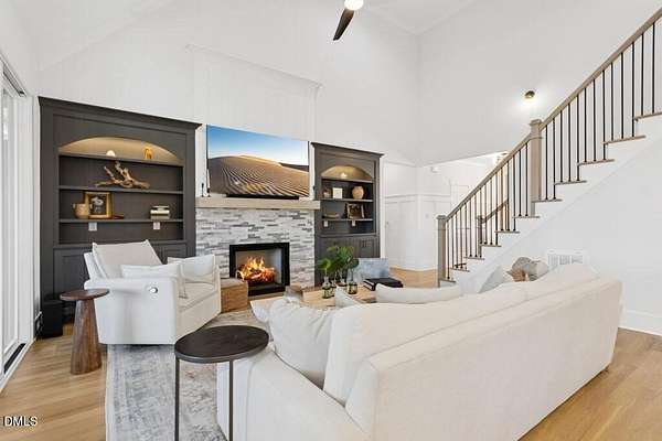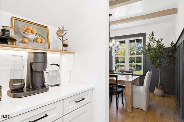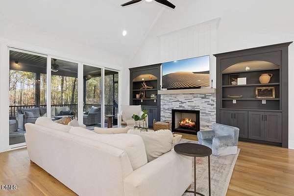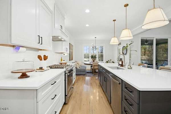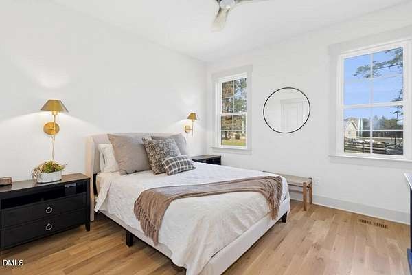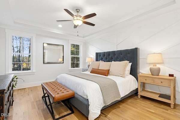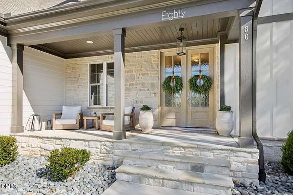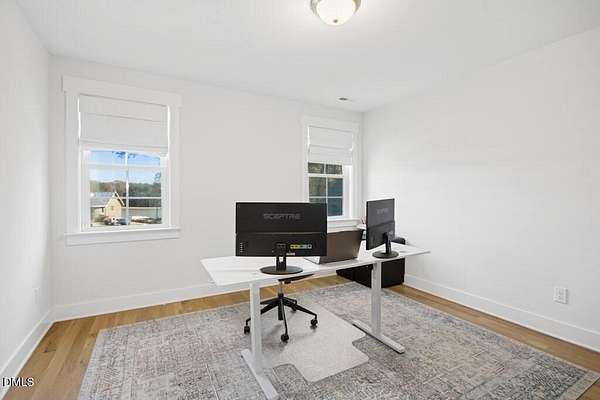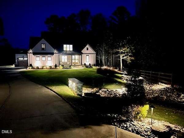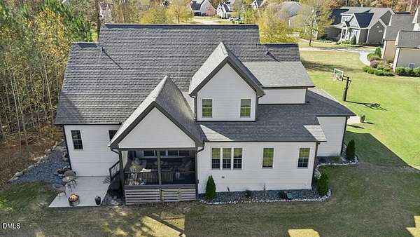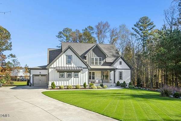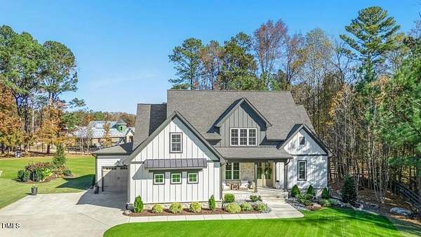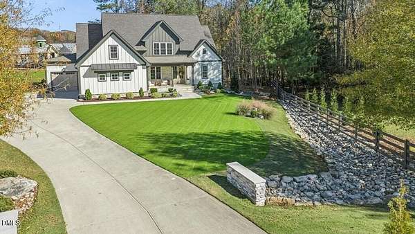 Stunning 2023 custom Modern Farmhouse by Brandywine Homes on private 3.13-acre cul-de-sac lot! Beautifully finished with tile + white oak hardwoods throughout, custom-painted cabinetry, craftsman trim, accent walls, arched doorways, & trey/vaulted ceilings with exposed beams. Chef's kitchen with quartz, soft-close cabinetry, large island, gas range, wall oven/microwave & under & above-cabinet lighting. Dramatic great room with gas fireplace and built-ins. Main-floor owner's suite with designer bath + 2 vanities; second main-floor bedroom with full bath. Upstairs: 2 additional bedrooms, office/flex room, bonus room, and 402 sq ft unfinished walk-in attic. Outdoor living is exceptional-15x12 screened porch, patio, covered front porch, extensive landscaping & lighting, irrigation, and ~20,000 sq ft of yard space surrounded by 2.13 wooded acres. Enjoy 100+ blueberry bushes, 1/4-mile trail system with bridges, and custom 4-rail fencing. Finished 3-car garage, concrete drive. Spectrum WiFi & AT&T Fiber available. SEE ATT FEATURE SHEET FOR DETAILS.