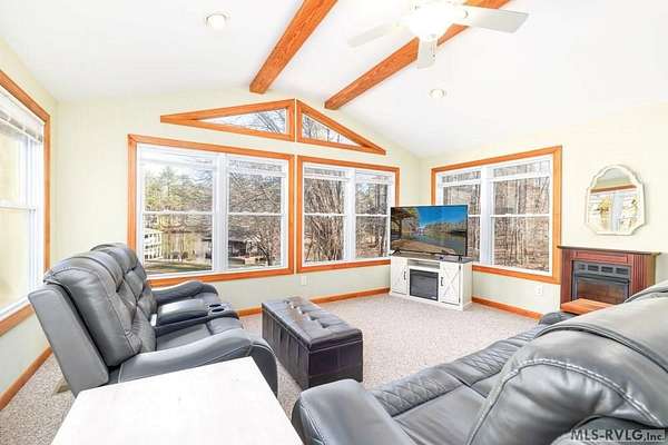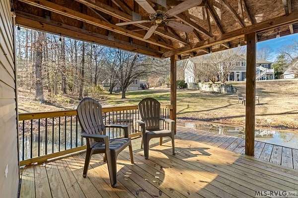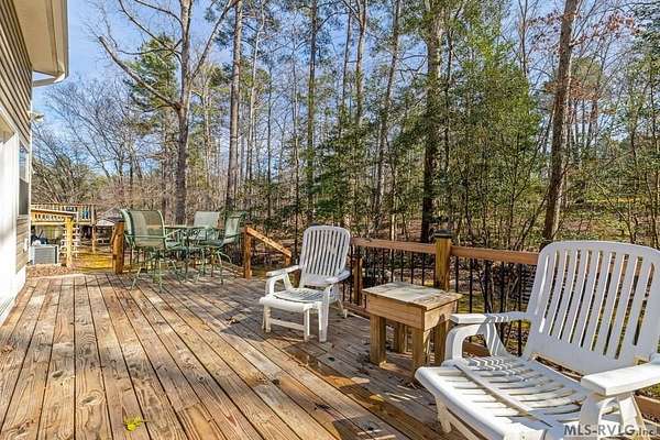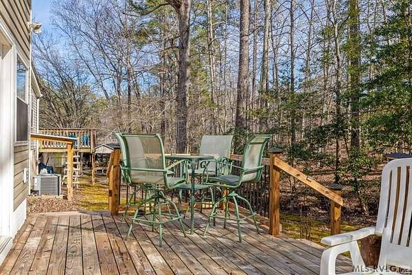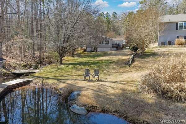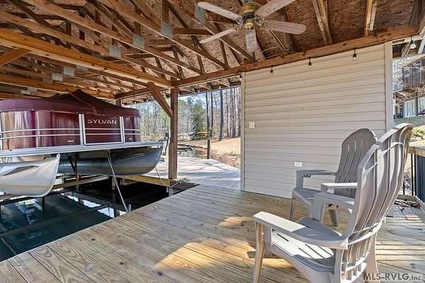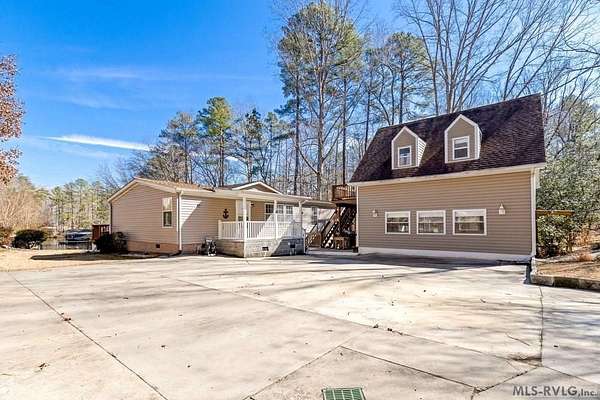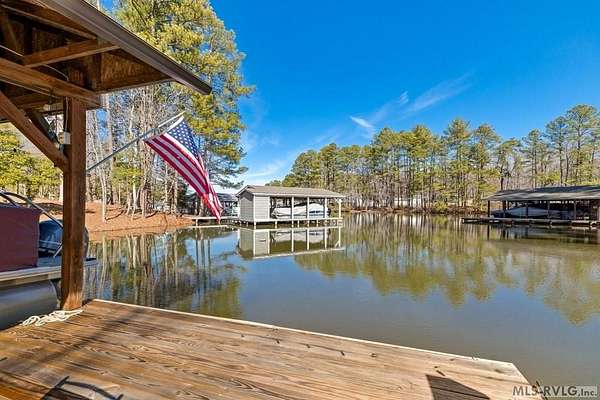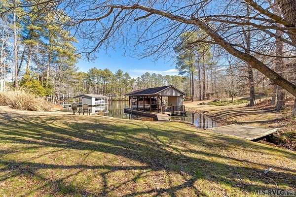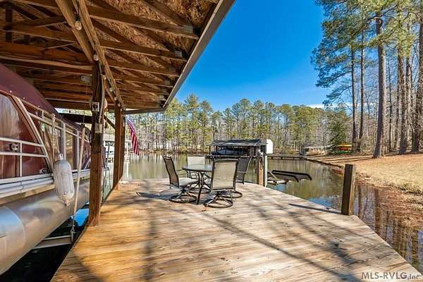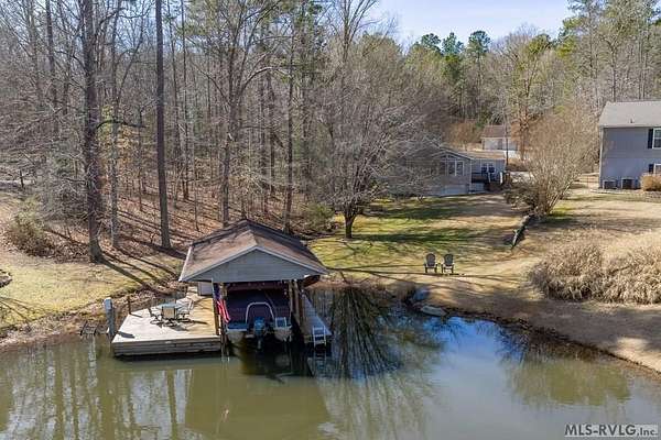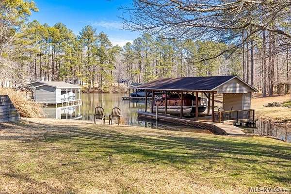 Tucked into a quiet cove on popular Pea Hill Creek on Lake Gaston, Pinetop Hideaway is the kind of place you come to settle in and stay awhile. The cozy main cottage with an open floor plan captures beautiful water views throughout and offers three comfortable bedrooms, creating an easy, relaxed lake lifestyle. Set on a gentle slope to the shoreline, the walk to the water is easy. The single boathouse offers both shaded and sunny deck space — extending your living outdoors — and the shoreline is ideal for launching paddleboards and kayaks. Surprises unfold across more than 4 acres. A winding drive through the trees sets the tone for privacy, while a Dominion Energy easement protects a wide open space perfect for gathering, playing, and enjoying the outdoors. Cozy nooks, layered decks, a small creek, and even a charming bridge create room to explore for all ages. The site-built carriage house — where the dream began — adds more than 1000 sq ft of recreation space, a flex room, bathrooms, and deck overlooking a firepit, making it ideal for guests who want their own hangout space. A detached two-car garage stores all the lake toys and offers an unfinished attic. With protection from short-term rentals, this remains what it was always meant to be — a true Lake Gaston hideaway. Sold furnished and ready for unhurried lake weekends to begin.