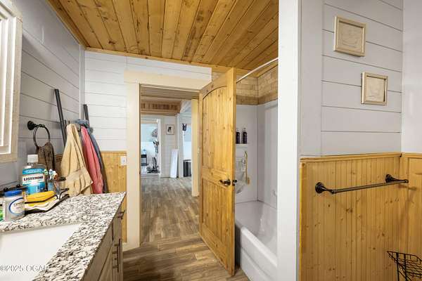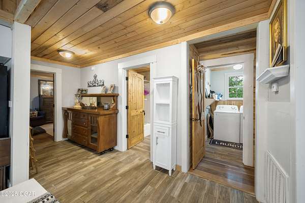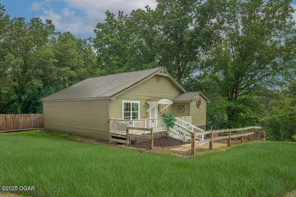 Offering $5,000 in seller concessions! Located just outside Pineville, this nearly 1,600 sq ft 2 bed, 1 bath home sits on approximately 4 acres with a year-round spring running at the bottom of the property. Originally built in 2020 and fully remodeled in 2022, this home is move-in ready and packed with features - including laminate flooring with added underfloor insulation for comfort, R45-rated insulation throughout, wood ceilings, custom shiplap and board-and-batten wall details, and a welcoming foyer with tall ceilings. The kitchen is the centerpiece, featuring brand new custom cabinetry, granite countertops, a large island with bar seating, and a built-in wine cooler. Large windows look out over the backyard, and a cozy gas stove-style fireplace adds charm and warmth. Appliances can stay with a strong offer, and several pieces of furniture will convey, making this a true turnkey property - whether for your full-time home or a short-term rental investment. Outside, the opportunities are wide open: a fully fenced backyard, a great deck with a gas grill, and a large gravel building pad already in place - designed to hold a 3,000 sq ft home or an impressive shop. Septic permits (1,000-gallon tank) are already paid for, and a successful perc test is on file. Footings are already poured off the west side of the house for an easy garage addition or expanded living space. New HVAC system installed in 2022 with a 98% efficiency rating. Whether you're looking for a primary home, a hobby farm, or an investment property close to Northwest Arkansas, this one checks all the boxes. Only 4 minutes to the river and sitting on city water, it also has potential for development. Don't miss the flexibility and value this unique property offers!