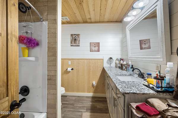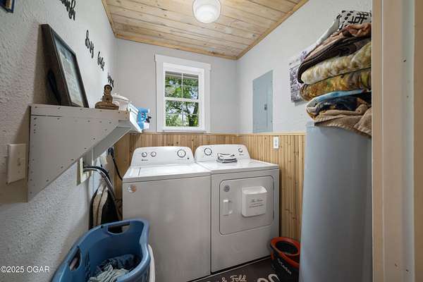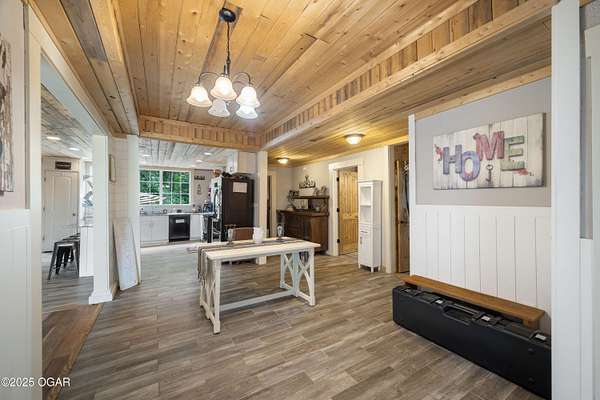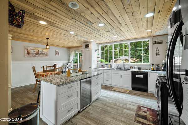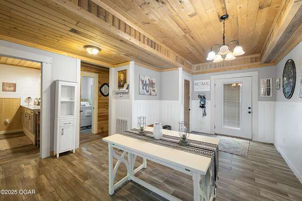 Offering $5,000 in seller concessions! Located just outside Pineville, this nearly 1,600 sq ft 2 bed, 1 bath home sits on approximately 4 acres with a year-round spring running at the bottom of the property. Originally built in 2020 and fully remodeled in 2022, this home is move-in ready and packed with features - including laminate flooring with added underfloor insulation for comfort, R45-rated insulation throughout, wood ceilings, custom shiplap and board-and-batten wall details, and a welcoming foyer with tall ceilings. The kitchen is the centerpiece, featuring brand new custom cabinetry, granite countertops, a large island with bar seating, and a built-in wine cooler. Large windows look out over the backyard, and a cozy gas stove-style fireplace adds charm and warmth. Appliances can stay with a strong offer, and several pieces of furniture will convey, making this a true turnkey property - whether for your full-time home or a short-term rental investment. Outside, the opportunities are wide open: a fully fenced backyard, a great deck with a gas grill, and a large gravel building pad already in place - designed to hold a 3,000 sq ft home or an impressive shop. Septic permits (1,000-gallon tank) are already paid for, and a successful perc test is on file. Footings are already poured off the west side of the house for an easy garage addition or expanded living space. New HVAC system installed in 2022 with a 98% efficiency rating. Whether you're looking for a primary home, a hobby farm, or an investment property close to Northwest Arkansas, this one checks all the boxes. Only 4 minutes to the river and sitting on city water, it also has potential for development. Don't miss the flexibility and value this unique property offers!