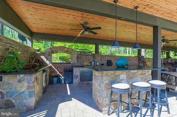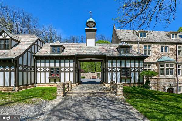 Welcome to Wyngate Manor! An elegant tree lined driveway leads to this magnificent castle-like estate that boasts 10 bedrooms, 7 full & 2 half baths, and over 10,000 square feet of living space on 4 levels. From the moment you step foot inside, you'll feel as though you've been transported to England and stepped into a fairytale setting. Countless upgrades and amenities include an elevator that goes to each floor, high ceilings, marble floors inspired by the Hatfield House in England, detailed crown molding, French leaded glass windows, plaster ceilings, stained glass windows, and much more. The exterior is an absolute oasis that features an in-ground patio & pool area, a covered patio built for entertaining with multiple countertops, and a high-top bar with gorgeous hanging lights and TV. It also includes convenient access to a pool house with bath amenities. This resort-like setting is perfect for summer gatherings and relaxing under the sun at the comfort of your very own home. Also included on this property is 100 School House Rd, an income producing rental house, and a detached 6-car garage with a rented apartment on the second floor. This awe-inspiring home welcomes you with an incredible foyer that includes marble floors, detailed wood panel walls, 2-story coffered ceiling, and stairs leading up to the second floor walkway. Just off the foyer is a gourmet kitchen complete with all stainless steel appliances, exposed beams, tile floor, built ins, and pantry. A convenient laundry/mudroom is next to the kitchen and offers an ideal place to come inside after a rainy day or outdoor activities in the grass. Off the opposite side is a breakfast room designed with a bow window allowing the room to be bathed in natural light. Created for formal occasions, the dining room is a marvel. Past a set of French doors is the Great Hall-the centerpiece of this home. Countless details can be found such as a Tudor-style wood fireplace, floor to ceiling windows, a 2nd floor Minstrel Gallery (inspired by Berkeley Castle in England) overlooking the room, access to the scenic yard & pond area, and more. Past a lovely seating room with center fireplace and wood panels, you'll find another wing of the house that includes an office, a living room that could be an additional bedroom with separate access to the foyer, a wet bar, and two sunrooms with access to the pool and patio area. Moving upstairs to the 2nd floor, you'll find 6 bedrooms, one of which is the amazing primary suite with a spacious dressing area & built in, a bedroom with gorgeous views of the nearby pond, and a private bath featuring a walk-in tile shower and dual vanities. The 3rd floor is home to 3 additional bedrooms, a full bath, large storage area, and a kitchenette with cooktop, sink, and mini fridge. The finished lower level makes entertaining a breeze with an incredible bar area featuring a hanging wine glass rack, wet bar, built ins, tile flooring, and exposed beams. Just off this area is a room currently used for fitness activities, with a concrete floor, coffered ceiling, and multiple closets. At the end of the hall, you'll find a family room that could be easily converted into a home theater with storage closets on both sides. At the opposite end of the lower level is a rustic dining area with brick floors, wood fireplace, and exposed beams. There is also a bedroom with built-ins and a private bath. The exterior of this immaculate property is nothing short of astonishing. Enjoy your very own water views with a picturesque pond set to the backdrop of lush landscaping and surrounding trees. Entertain guests at the bar area next to the relaxing pool & patio. Play a game of tennis on your very own on-site court. Words truly cannot do this castle-like estate justice. Conservation easement available upon request. Witness this once-in-a-lifetime property for yourself and schedule your showing today!