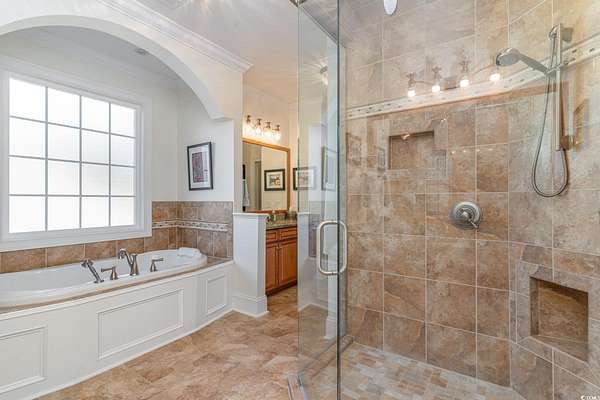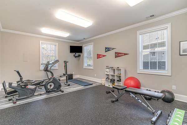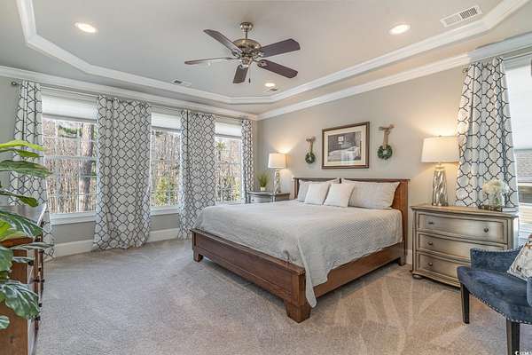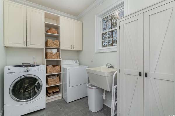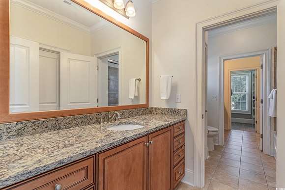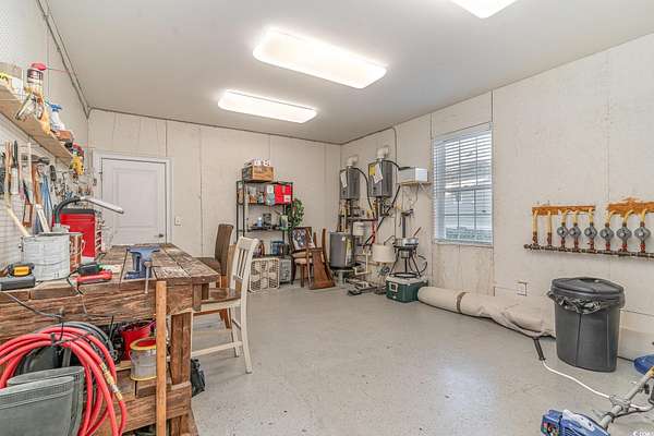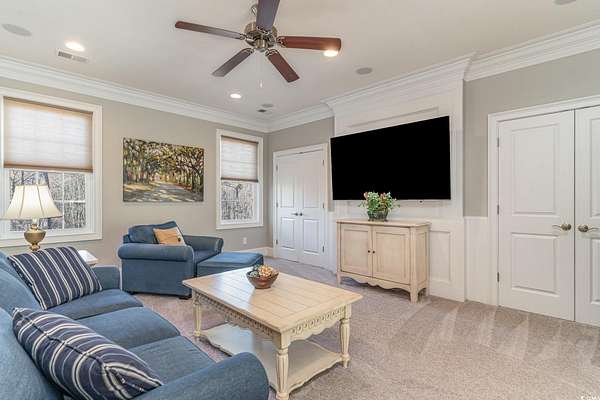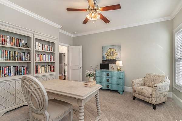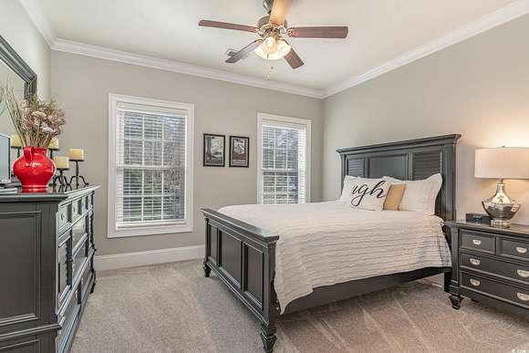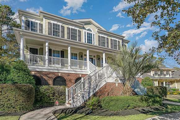 NEW ROOF INSTALLED SEPTEMBER 2025!!! FRESH NEW EXTERIOR PAINT COLOR" SHERWIN WILLIAMS DOVER WHITE" A RARE ownership opportunity! Experience Luxury and Grand Southern Living in this spacious 2+acre waterfront estate, situated in the highly sought-after gated community of Collins Creek Landing. Walk from the fenced backyard onto a private boardwalk through a tranquil wooded oasis to a PRIVATE FLOATING DOCK on deep-water Collins Creek, which ties directly to the Intracoastal Waterway a dream for boating or fishing enthusiasts, and nature lovers alike. This spectacular home with great curb appeal offers 5 bedrooms and 4.5 bathrooms on 3 levels with elevator access to ALL levels. Other exceptional features of the home are an exercise room with an attached full bathroom (which could alternately be used as a guest/in law suite), media room, office and shop room with an extra large 3-car garage with ample space for a golf cart, too. The circular driveway out front offers additional off-street parking for guests as well. Inside, find desirable features such as plantation shutters, real honey oak hardwood floors and triple crown moulding. Enter the main living level where a grand staircase in the two-story foyer separates a beautiful dining room and an office, with coffered ceilings and wainscoting found in both. The huge primary bedroom is also on this level, complete with a spacious en suite with tiled floors and granite countertops, featuring a walk-in shower, separate water closet, a jetted soaking tub, and dual walk-in closets. This main living floor is where you also find the family room with gas fireplace, which opens up through French doors to a lovely screened porch overlooking the backyard and beyond. An eat-in gourmet kitchen with French country cream cabinetry and granite countertops, double ovens, open deck with gas grill hook up finish out this level. The top level of the home features 4 large bedrooms, 2 full bathrooms and a large media room perfect for movie and game nights. The lowest level of the home is where you find the exercise room with a full bath, shop room, and a huge 3-car garage with tons of storage space. Outdoors find a large patio space with a built-in gas grill and fire pit. Residents of this exclusive gated community enjoy access to exceptional amenities including a community center complete with kitchen and bathrooms, neighborhood pool, batting cage, soccer field, basketball court, and playground area. Beyond the community center find a boat Launch, gazebo & scenic boardwalk to Collins Creek. Additionally, the community also has a locked boat storage facility for residents only. For beach lovers Huntington Beach State Park is a mere 10 minutes away. This Low country masterpiece offers an unparalleled lifestyle - Schedule your private tour today! Wachesaw Plantation Country Club Golf Equity Membership Available if Desired!! PRICED BELOW APPRAISAL! Agent related to sellers.