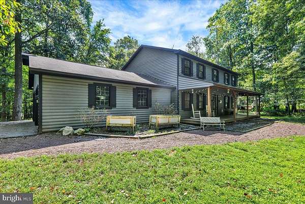 Welcome to your private home and retreat nestled on nearly 2 wooded acres in the sought-after Mountaineer Village community in the Twin Valley School District-With cedar log siding and an abundance of character, this spacious home offers the perfect blend of comfort, style, and function. Step inside to a smartly designed layout with zero wasted space-every corner features thoughtful storage, and easy flow and so much natural light! The main level welcomes you with durable vinyl plank flooring throughout, leading to a bright and open eat-in kitchen featuring white cabinetry, soft-close dark gray lower cabinets, stainless steel appliances, ceramic tile backsplash, a farm-style sink, and a large pantry. Sliding glass doors from both the kitchen and spacious family room open to a private deck with serene wooded views, perfect for relaxing or entertaining. The main floor also includes a separate dining room and a flexible living room/home office space/flex space, offering versatility to suit your lifestyle. Upstairs, you'll find four bedrooms, including a primary suite with an en suite bath, separate dressing area with a sink, a large walk-in closet, and beautiful natural light pouring in from the oversized bathroom window. Warm wood accents add to the thoughtful style choices. A deep hall closet and a full bath complete the second floor. Beautiful Vinyl plank flooring throughout the entire 2nd floor. The finished basement adds even more living space, featuring a bedroom, full bathroom with brand-new flooring and vanity, flexible living area, and an additional room that could serve as a 6th bedroom or flex space-complete with recessed lighting and charming barnwood and corrugated metal finishes. Car enthusiasts and hobbyists will love the 1100 sq ft detached 4-car garage, fully equipped with electric and a reinforced bay ready for a future lift. Two separate man-door entrances add convenience. There's also an attached 2-car garage with a full storage loft above. Outside, enjoy an outdoor lifestyle with a huge front porch, large fire pit, wooded privacy, and plenty of room for animals, recreation, or relaxation. This is not just a home-it's a retreat with stylish upgrades and updates. 1 year home warranty with acceptable offer. Come experience the peace, space, and comfort this special property has to offer.