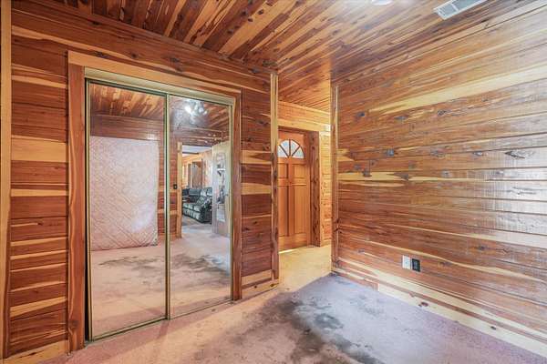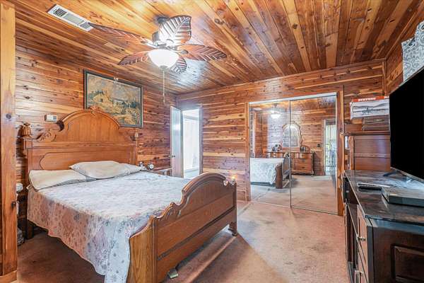 Experience charming country living with this beautiful brick home nestled on 5.7 acres of picturesque land. Whether you're looking for a primary residence or a serene getaway, this custom-built three-bedroom, one-and-a-half-bath home offers a unique blend of comfort and natural beauty. KEY FEATURES: Location: Situated on 5.7-acres with breathtaking views of trees, a pond, and deer roaming the property. Interior: The home's interior features premium cedar lining on all walls and most ceilings. If cedar isn't your style, consider painting it white for a stunning shiplap look. Fireplace: Enjoy cozy evenings by the wood-burning fireplace. Dining: Formal dining room for family gatherings and special occasions. New HVAC System.(Continued) Kitchen: Country-style kitchen with ample space for culinary creativity. Sunroom: Relax in the sunroom, which offers additional living space not included in the square footage. A small pond on the property offers relaxation for fishing enthusiasts. Valuable timber on the property adds to its allure and potential value. ADDITIONAL AMENITIES: Workshop: A workshop and an additional out-building provide versatile spaces for hobbies, storage, or other uses. Flooring: Carpet will need replacing. Some work needed. This property is a rare find, combining the charm of a country home with modern conveniences and abundant natural beauty on 5.7 acres. Don't miss the opportunity to make this charming retreat your own!