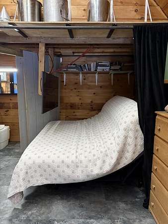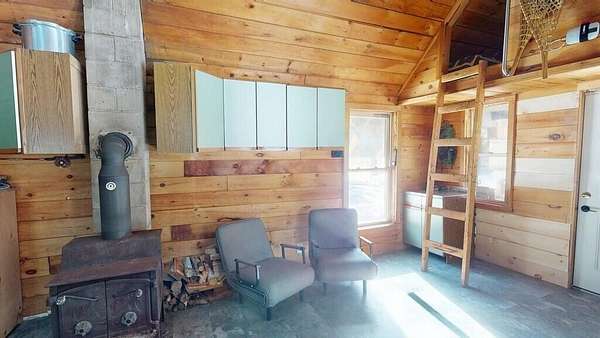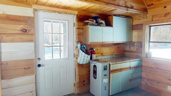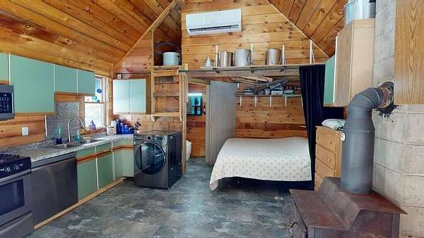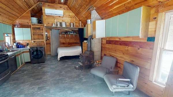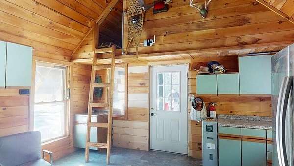 Experience camp in the Maine woods like you've never imagined. Arrive at 80 Wheaton Way and discover the rare balance of pristine wilderness and modern self-sufficiency--you may not want to leave... and here, you don't have to. Set behind a gated entrance on 47 private acres of hunting land, this open-concept log cabin offers 486 square feet of thoughtfully designed living space. A bunkroom loft provides additional sleeping space, while a second loft serves as a utility area. Designed for year-round comfort, the cabin features a classic wood stove for deep winter warmth and a newly installed heat pump for efficient heating and cooling. This off-grid solar cabin, powered by a Sungold Power system, makes self-sufficient living feel simple and reliable. New flooring, updated countertops, and stainless steel appliances--including a combination washer/dryer--bring modern convenience to this peaceful retreat. Starlink satellite internet and a cell phone booster help keep you connected when needed. A stream-fed water line services the shower, dishwasher, and laundry. An eco-friendly Think Tank composting toilet has served the current owners well but a septic design is available, too. A sliding door provides privacy for the shower and toilet area while also housing the solar battery bank and inverter. The land is exceptional, attracting White-tailed Deer, Black Bear, and Wild Turkey. Relax beside your private waterfall and stream, or overlook two small ponds that draw a variety of wildlife. When the water is high, the gentle rush of the stream can be heard from inside the cabin. Conveniences are still within reach, with a grocery store less than 5 minutes away and a 45 minute drive to Bangor, all its amenities and Bangor International Airport. Whether you're seeking a hunting basecamp, a homestead start, or a secluded retreat, this Bradford property offers privacy, natural beauty, and modern off-grid comfort.