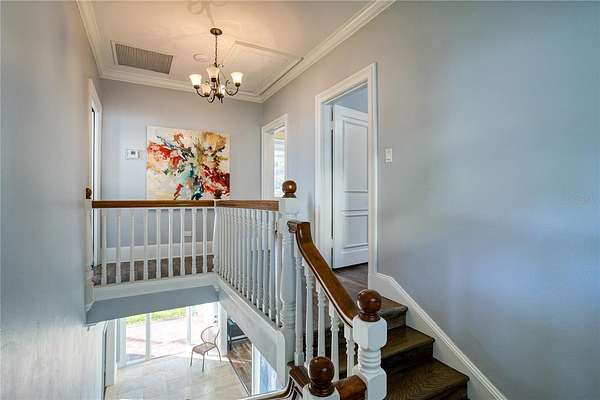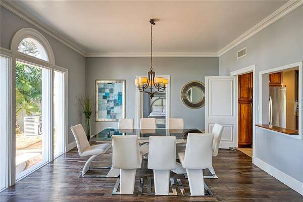 - Ceiling Fans(s), Crown Molding, Eat-In Kitchen, Primary Bedroom Main Floor, Solid Surface Counters, Wet Bar