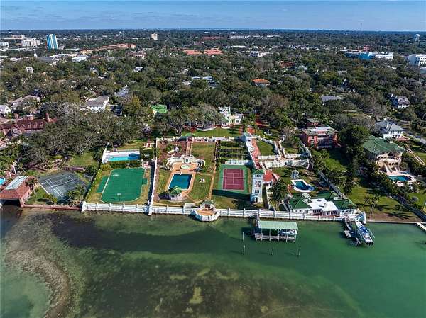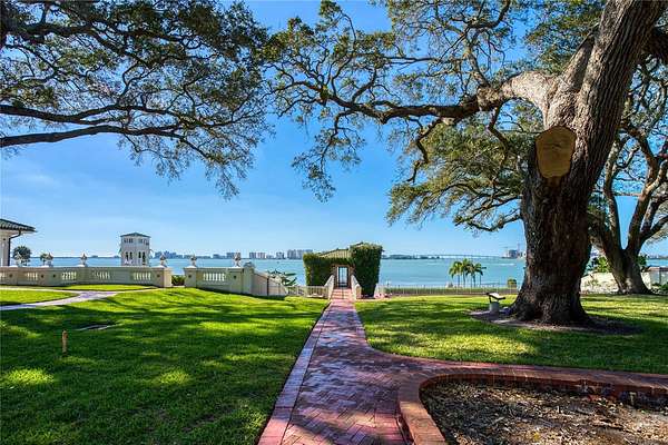 Under contract-accepting backup offers. Waterfront Masterpiece in Clearwater's Harbor Oaks. Breathtaking vistas of Clearwater Harbor and the Clearwater Beach skyline combine with manicured gardens and a coveted address to create an idyllic setting for this Greek Revival-style home in Harbor Oaks. Privately situated behind stately walls with gated access and a brick drive, the two-story home commands 1.1 acres and boasts more than 100 feet of direct waterfront along the Intracoastal Waterway. Harbor lights and city sights present a stunning backdrop for the outdoor oasis comprised of a lighted tennis court, tiered terraces, English gardens and a swimming pool. Particularly noteworthy is the exquisite observatory where spectacular Gulf sunsets are best viewed. Inside this spacious home is a sophisticated plan that redefines coastal elegance with a flair. Designed to promote comfortable family living as well as stylish entertaining, the home is appointed with an array of classic elements including crown moldings, arched doorways, custom millwork and Palladian windows. A generous display of glass doors allow natural light to fill interior spaces while also capitalizing on magnificent water views. Sized to generous proportions, the kitchen facilitates meal preparation with an abundance of storage cabinets and work space. Encompassing 6 bedrooms, 5 full and 2 half bathrooms, this waterfront masterpiece is complete with an expansive billiards room featuring a full size wetbar. The historic neighborhood of Harbor Oaks is conveniently located in the heart of Clearwater with easy access to cultural venues, recreational activities, major sporting events, world-class medical facilities and award-winning Gulf beaches.