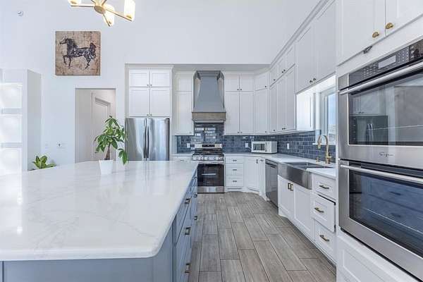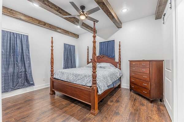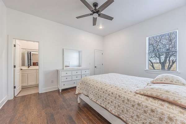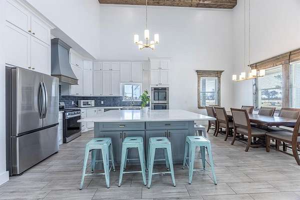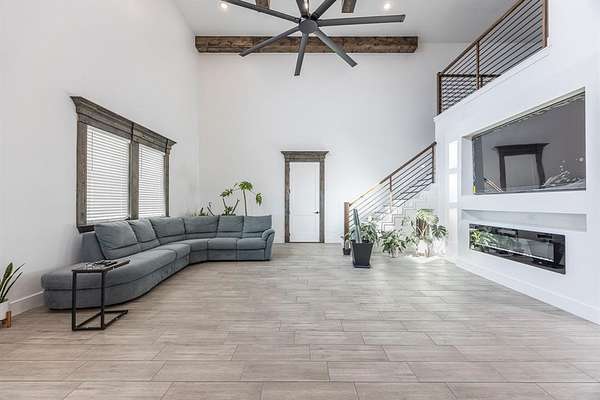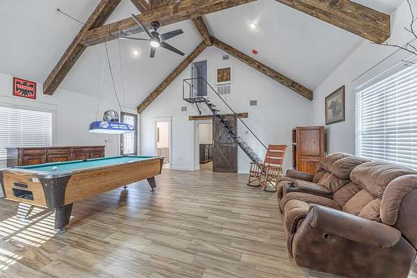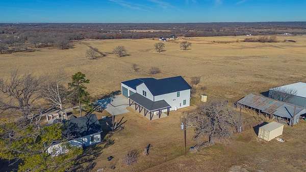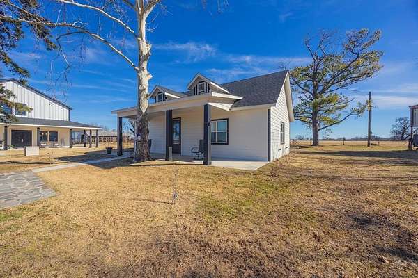 If tranquility, privacy, and room to roam are at the top of your wish list, this extraordinary gated 6-acre retreat delivers it all. Tucked away in peaceful surroundings, this sophisticated barndominium offers refined living paired with the beauty of expansive Texas landscapes. A two-sided wraparound covered porch welcomes you home and is the perfect spot to unwind and soak in breathtaking sunsets and ever-changing skies. Step through the elegant double doors and prepare to be impressed by an expansive, open-concept interior that unfolds before you, showcasing wood-look tile flooring, soaring wood-beamed ceilings, custom built-ins, and a thoughtfully designed entertainment center that anchors the living space. The stunning kitchen is designed to delight even the most discerning chef. Featuring a timeless subway tile backsplash, abundant cabinetry, generous counter space, and a massive quartz-topped island with ample seating, this space is ideal for casual meals, lively gatherings, or quiet evenings at home. Each of the three spacious bedrooms includes its own private ensuite bath, offering comfort and privacy. A versatile loft at the top of the stairs provides additional living space that would be perfect for a home office, media room, or as a creative retreat. Car enthusiasts, hobbyists, or those needing serious storage will appreciate the attached 2,515-square-foot garage, offering exceptional space for vehicles, equipment, or workshop needs. A separate 860-square-foot guest house with two additional bedrooms and a full bath ensures friends and family can visit in comfort. The property also features a livestock barn and covered RV parking. An additional 6 acres is available for purchase, providing even more opportunity to expand your vision. (Replatting will occur prior to closing.) Opportunities like this don't come along often; schedule your private showing and experience this remarkable retreat for yourself.