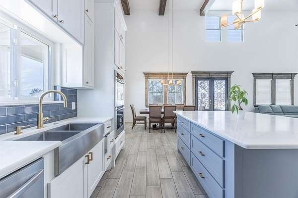 - Built-In Features, Cathedral Ceiling(s), Decorative Lighting, Eat-In Kitchen, Kitchen Island, Loft, Open Floorplan, Pantry