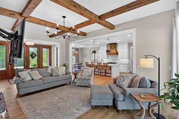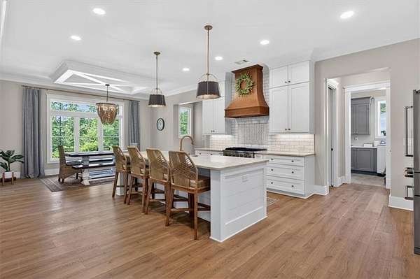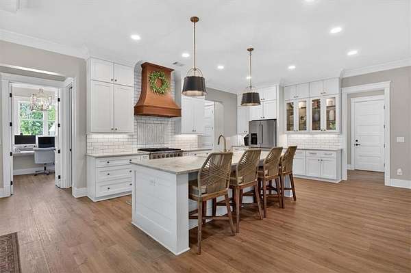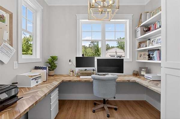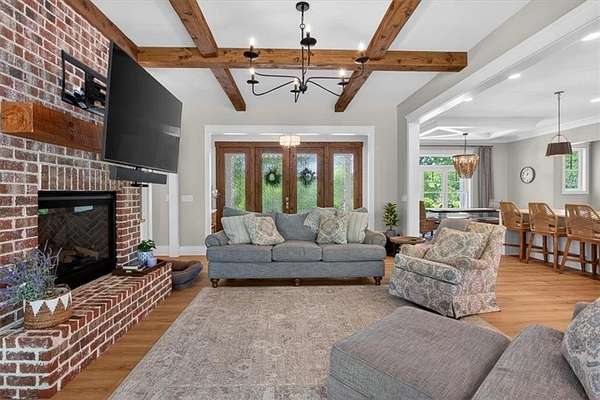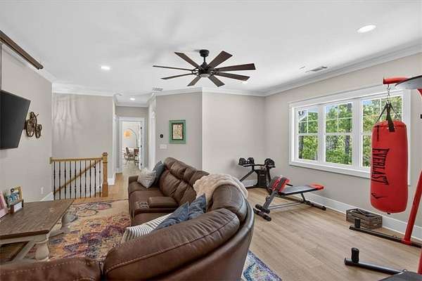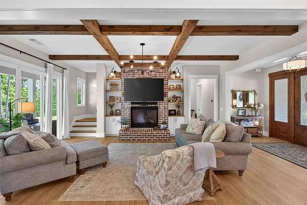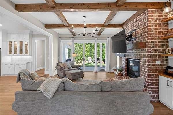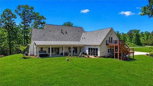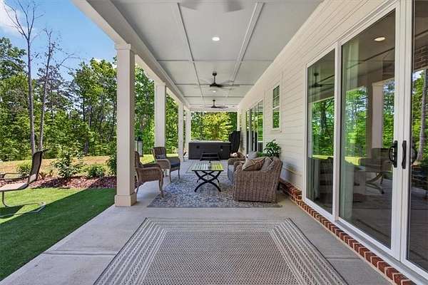 Welcome to a rare and extraordinary retreat at Garland Mountain Trail, positioned on 5.36 acres of land, where elevated design and natural beauty exist in perfect harmony. This newly built estate offers over 5,000 square feet of thoughtfully curated living space, delivering both sophistication and serenity in one breathtaking setting. From the moment you arrive, the home's striking presence is undeniable-surrounded by rolling landscape, wooded privacy, and sweeping views that capture the essence of North Georgia living. This exquisite home features an open-concept floor plan, highlighted by a charming brick front porch. Inside, expansive interiors are defined by 10' ceilings with custom hand hewn beams, and one of a kind custom dining room ceiling design that immediately draws your your attention upward. The down stairs living room has built-in shelving, and detailed trim work that add sophistication and character, abundant natural light, and seamless transitions between living, dining, and entertaining spaces. The heart of the home is designed for both everyday comfort and elevated gatherings, featuring high-end finishes, custom details, and a layout that effortlessly blends openness with intentional design. The kitchen is a chef's delight, complete with a large island, a walk-through butler's pantry, custom shelving, generous counter and cabinet space, upgraded appliances and premium TAJ HAHAL quartz countertops. The main floor also features the primary retreat with spa-inspired ensuite, oversized closet with its own separate entrance to the expansive back patio. A secondary bedroom with its own bathroom, laundry room, half bath for guests, and a private office. Upstairs you will find a second living area, four additional bedrooms, each with it's own closet and storage area, laundry closet and two full tranquil baths. Over the expansive 3 car garage, you will find an additional area perfect for storage or future teen/ in-law suite, stubbed up for aa future sub panel, another full bathroom and/or kitchenette, with its own private entrance and deck with views. This area could be used as supplemental income as an AirBNB or to run your business. The generous square footage allows for flexibility in lifestyle and use. Step outside and experience true tranquility with the oversized custom pergola at the garage doors inviting you home. +1.5 acres of dog watch invisible fence. Feel safe at home knowing you will have a whole house generator in case of power outages. The surrounding acreage offers endless opportunities-whether envisioning a private outdoor oasis, equestrian lifestyle, or simply enjoying the quiet beauty of nature. Enjoy the early morning with a cup of coffee on many of the outdoor sanctuaries, and your evenings relaxing in the large 6 person hot tub over looking the scenic views. Located on a highly sought after road that has the Garland Mountain Horse & Hiking Trails, Shooting Clays, and Mission Park. This property provides direct access to miles of scenic trails and outdoor recreation, making it ideal for those who value both luxury and adventure. Despite its secluded feel, this estate remains conveniently positioned within reach of Canton, Jasper, and Cartersville, offering the perfect balance of privacy and accessibility. This is more than a home-it is a lifestyle defined by space, design, and the quiet prestige of mountain living.