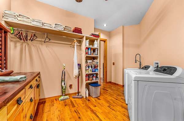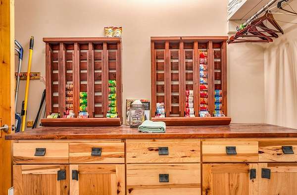 - Beamed Ceilings, Breakfast Bar, Breakfast Nook, Cathedral Ceiling(s), In-Law Floorplan, Open Floorplan, Pantry, Recessed Lighting, Shelving, Split Bedroom, Vaulted Ceiling(s), Walk-In Closet(s)