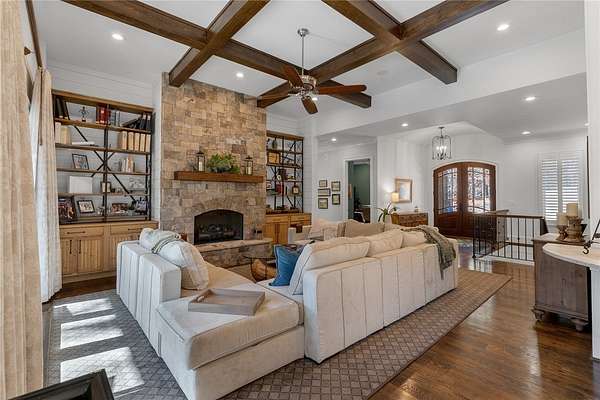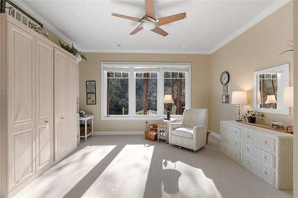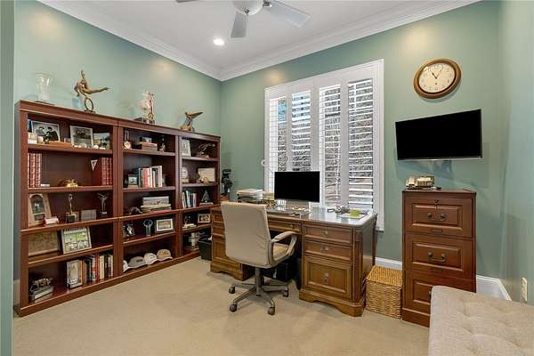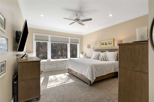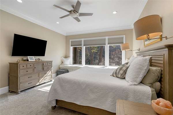 - Bath In Primary Bedroom, Bathtub, Ceiling Fans, Dual Sinks, Fireplace, Jetted Tub, Main Level Primary, Separate Shower, Solid Surface Counters, Steam Shower, Walk In Closets, Walk In Shower, Window Treatments, Wired For Sound