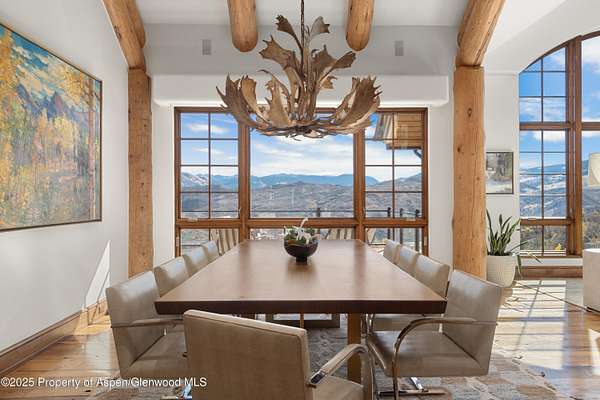 Perched high above all neighboring homes, this remarkable mountain-contemporary estate in Snowmass Village offers absolute privacy and commanding panoramic views that stretch across the valley and surrounding peaks. Set on four and a half pristine acres, the 6,400-square-foot residence embodies the perfect harmony of timeless mountain craftsmanship and sophisticated contemporary design. Recently reimagined with meticulous attention to detail, every element - from the custom millwork to the curated finishes - reflects an unwavering commitment to quality and elegance. Expansive living spaces invite both grand entertaining and quiet reflection, capturing the ever-changing light of the Rockies from every room. Seamless indoor-outdoor living defines the experience, with generous terraces and gathering spaces oriented toward the breathtaking vistas. A private driveway enhances the sense of exclusivity, while direct access to scenic hiking and biking trails connects you effortlessly to the natural surroundings. Just minutes from world-renowned Snowmass Ski Area, Aspen, and the best of the Roaring Fork Valley, this property offers a rare opportunity to own one of the region's most extraordinary mountain sanctuaries.
