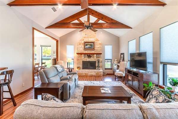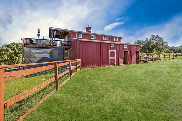 Gorgeous property across the street from Lake LBJ! In the heart of Texas hill country, this property features a custom-built rock home and a high-quality and well-maintained barn that could be used for horses, livestock, a social gathering place, or just storage - and it is all just minutes from Lake LBJ and the prestigious Legends Golf Course. The stunning home features a split floor plan with a spacious primary suite and two additional bedrooms. The guest bathroom has been beautifully updated with a large walk-in shower. The large chef's kitchen equipped with top-of-the-line GE Monogram Series appliances. The first floor of the barn includes a cozy apartment that can serve as additional living space, a guest suite, or a comfortable retreat. The large barn has two stalls that open to a sizable turnout area. The barn's upper level features a bar and a large deck, creating the perfect backdrop for entertaining guests and hosting gatherings. Additionally, the recent addition of a spacious, lighted 30x45 ft. RV barn with a 30 Amp hookup provides convenience for traveling, storing large equipment, or accommodating additional vehicles. This property is ready to go for its new owners!