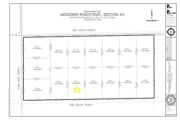 Est $2,542/moMeadows Ranch East Lot 5 Ph 2- 5 acre parcels adjacent to SUU Farm. Electricity & water all available in area. Lots 1,2, & 3 reserved.