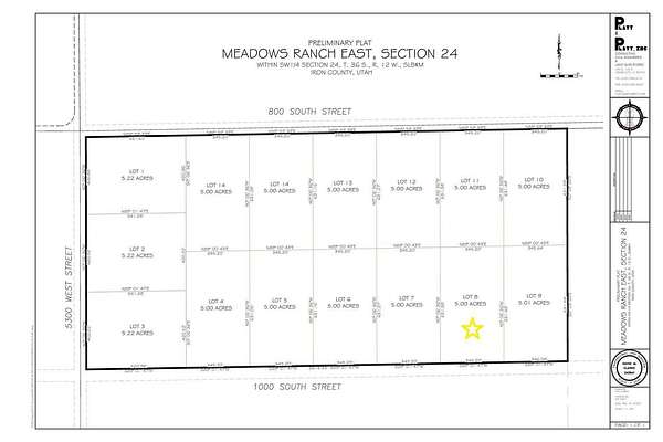 Est $2,542/moMeadows Ranch East Lot 8 Ph 2 - 5 acre parcels adjacent to SUU Farm. Electricity & water all available in area. Lots 1,2, & 3 reserved.