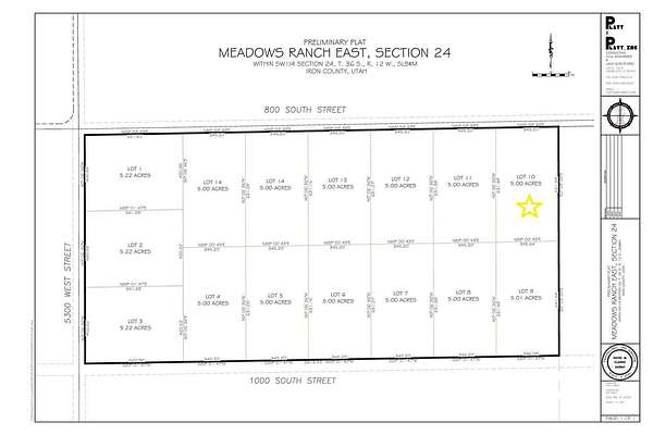 Est $2,542/moMeadows Ranch East Lot 10 Ph 2 - 5 acre parcels adjacent to SUU Farm. Electricity & water all available in area. Lots 1,2, & 3 reserved