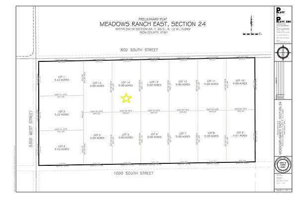Est $2,542/moMeadows Ranch East Lot 14 Ph 2 - 5 acre parcels adjacent to SUU Farm. Electricity & water all available in area. Lots 1,2, & 3 reserved.