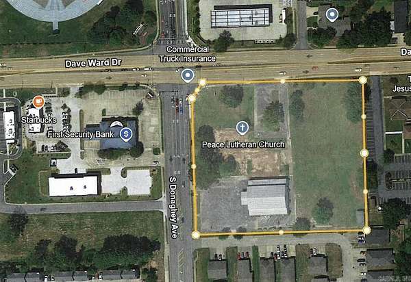 Est $18,782/moPrime location! Across from University of Central Arkansas (UCA) Soccer Field. Traffic count is about 34,000 cars per day! Approx. road frontage is 420' on Donaghey Avenue and 470' on Dave Ward Drive. All utilities available. Currently zoned S1. May split the property. Call listing agent for details! See 4th picture for details on splitting property-- Church & 1.09 acres $1,750,000 1.5 acres $1,500,000 1.42 acres $900,000