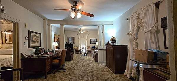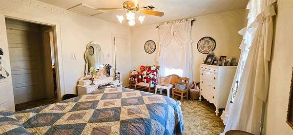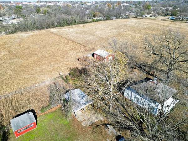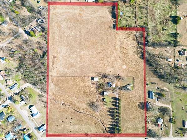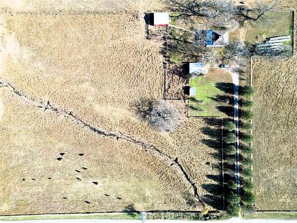 Fenced 17 acres with 2 story large frame farmhouse built in 1905 at the edge of city limits. Land is mostly clear for grazing/ baling with corral. Home is 120 years old but has been taken care of and is move in ready. 4 bedrooms and one bathroom upstairs and the master bedroom and bathroom are downstairs. Large kitchen with breakfast nook, pantry/washer and dryer area. All kitchen appliances remain with the home including the washer and dryer. Open living/dining/entry. Central/heat and air, city water but there are two water wells on site (condition unknown). Dry storm shelter. Heated shop/barn with concrete floor with garage door is 767 sq ft, potting shed and 2 vehicle carport with storage area. Back deck and covered front porch. Beautiful private drive with mature ornamental pear trees lining the path. Pecan trees. Very secluded. Owner is selling "as is". If you love older homes, you will love this!