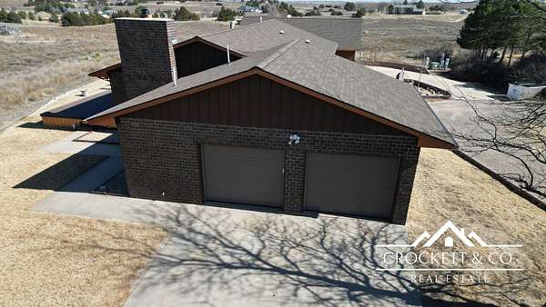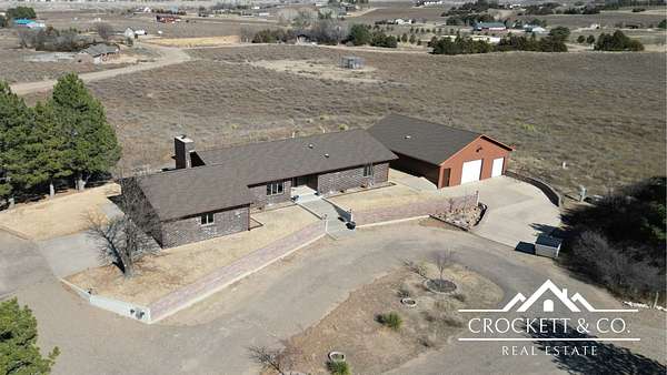 Sagebrush Estates updated home, that sits on approximately 3.5 acres with expansive surrounding views! The main level features a spacious primary suite with dual closets and en-suite bath w/dual vanities. The living and dining areas include a gas fireplace and eating bar. The updated kitchen offers custom cabinetry, floor-to-ceiling pantry storage, a gorgeous stone sink, built-in microwave drawer, and oversized island. A 2nd bedroom and full bath down the hall plus a mud/laundry room and third bathroom complete this large main floor. The finished basement includes two large bedrooms with walk-in closets, office/hobby room, additional living space with wet bar, recreation area, fourth bathroom, and utility/storage room. Additional highlights: reverse osmosis & water softener (2022), fresh interior paint, 40' x 31' detached heated garage, new roof & guttering on home and detached garage (Aug 2025), new overhead doors on attached garage (Aug 2025), and refinished raised deck.