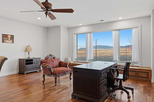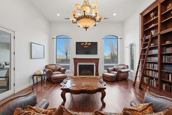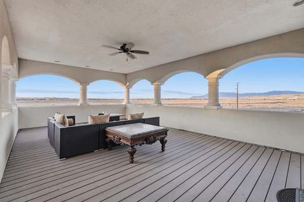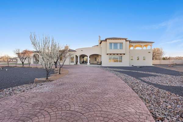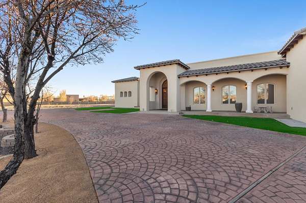 Experience unparalleled luxury at the Salida Sandia Estate, a commanding 12,000 sq ft mansion set along the tranquil edge of the Valles del Oro National Wildlife Refuge. This world-class residence showcases 6 opulent bedroom suites, 7 spa-inspired baths, and a grand entertainer's layout highlighted by a full-service designer bar and a chef's kitchen appointed with top-tier appliances. Indulge in a private theater for cinematic experiences and unwind on a serene balcony capturing endless views of the Sandia Mountains and Rio Grande Bosque! Encompassed within a fully gated compound for ultimate privacy, this is a legacy estate defined by scale, sophistication, and distinction. Exquisitely reimagined stunning updates in an enchanting timeless design. 150k seller credits available!