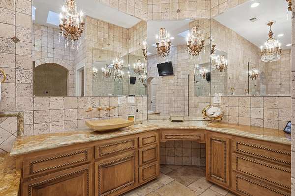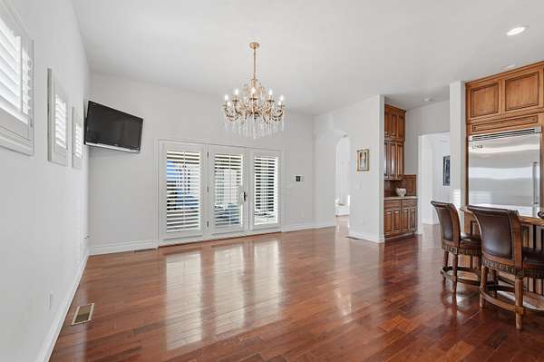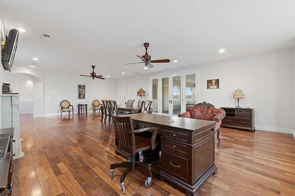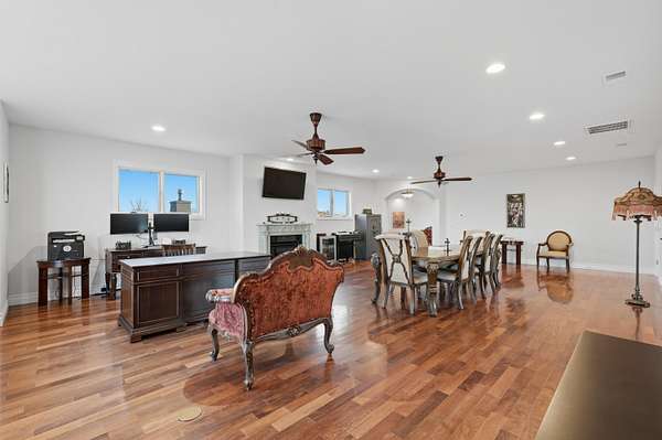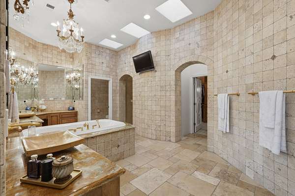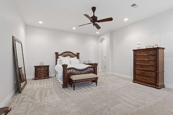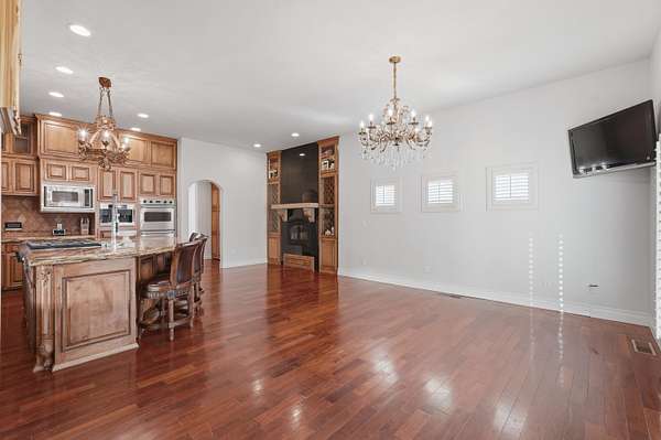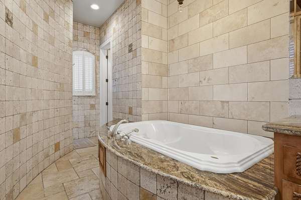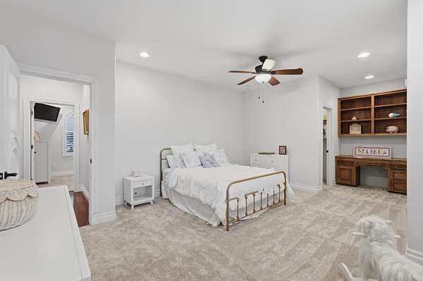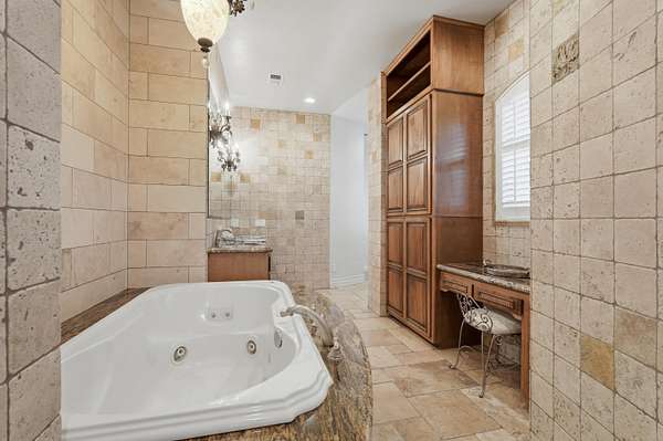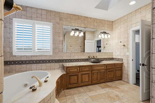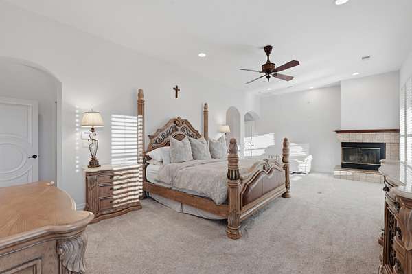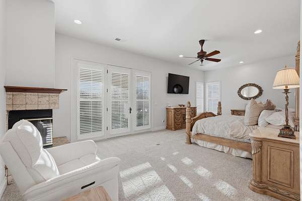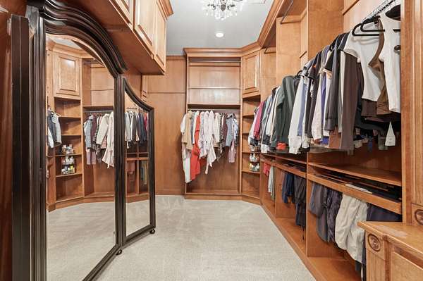- Bookcases, Breakfast Area, Breakfast Bar, Ceiling Fans, Central Vacuum, Dressing Area, Entrance Foyer, Great Room, High Ceilings, Home Office, Jetted Tub, Kitchen Island, Main Level Primary, Multiple Living Areas, Multiple Primary Suites, Pantry, Separate Formal Dining Room, Separate Shower, Water Closets, Wet Bar